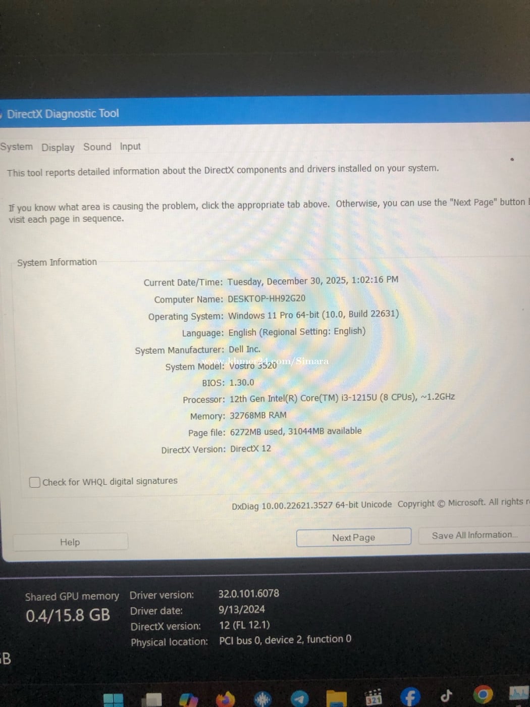 Dell Vostro 5320 Core i3-12th Ram 32GB SSD 512GB HHD 1T Telegram 0965225xxxClick To Call