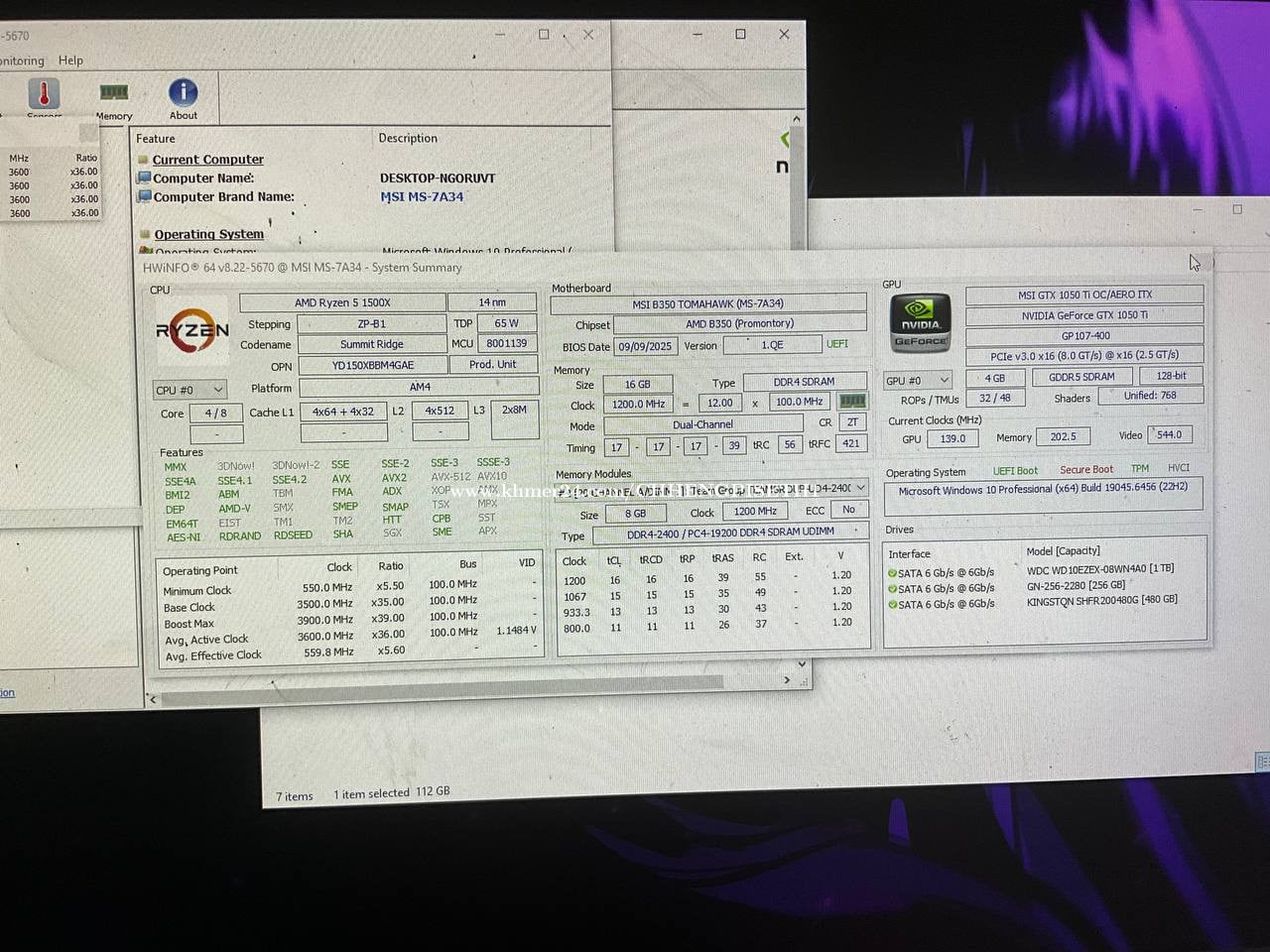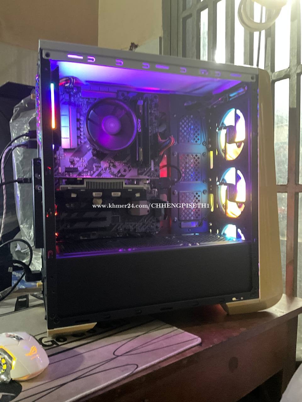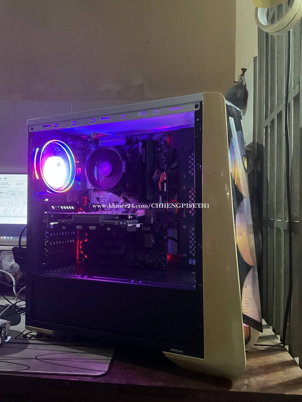 Desktop gaming and office តម្លៃ170$ CPU: Ryzen 5 1500x (កម្លាំងស្មេីi5-7th) Ram: DDR4 16GB (8X2) GPU: MSI GTX 1050ti 4GB Board: MSI Tomahawk B350 (board ធំ អាចថែមram អាចឡេីងCPUទៅជំនាន់ក្រោយ AM4) Storage: M2 256GB + HDD 1TB PSU: Ruix Titan 500W 80+ Cool: Stock AMD Cooler Case: SAHARA Fan: 4 x RGB Fan ថែមsoftware, window, games ទីតាំងឬស្សីកែវ ភ្នំពេញ ទំនាក់ទំនង 017561xxxClick To Call Telegram: @CGPISETH