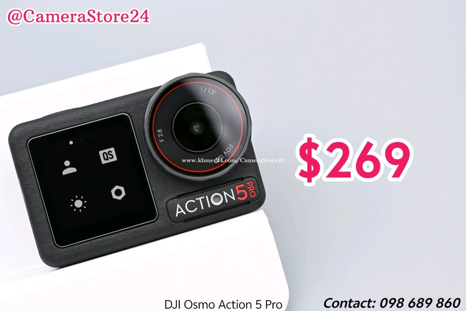 DJI Osmo Action 5 Pro (Standard Combo) គុណភាព: មួយទឹក 99% ទំនាក់ទំនង: 098689xxxClick To Call Telegram: CameraStore24 SHOP Facebook page: CameraStore24 *Free delivery*