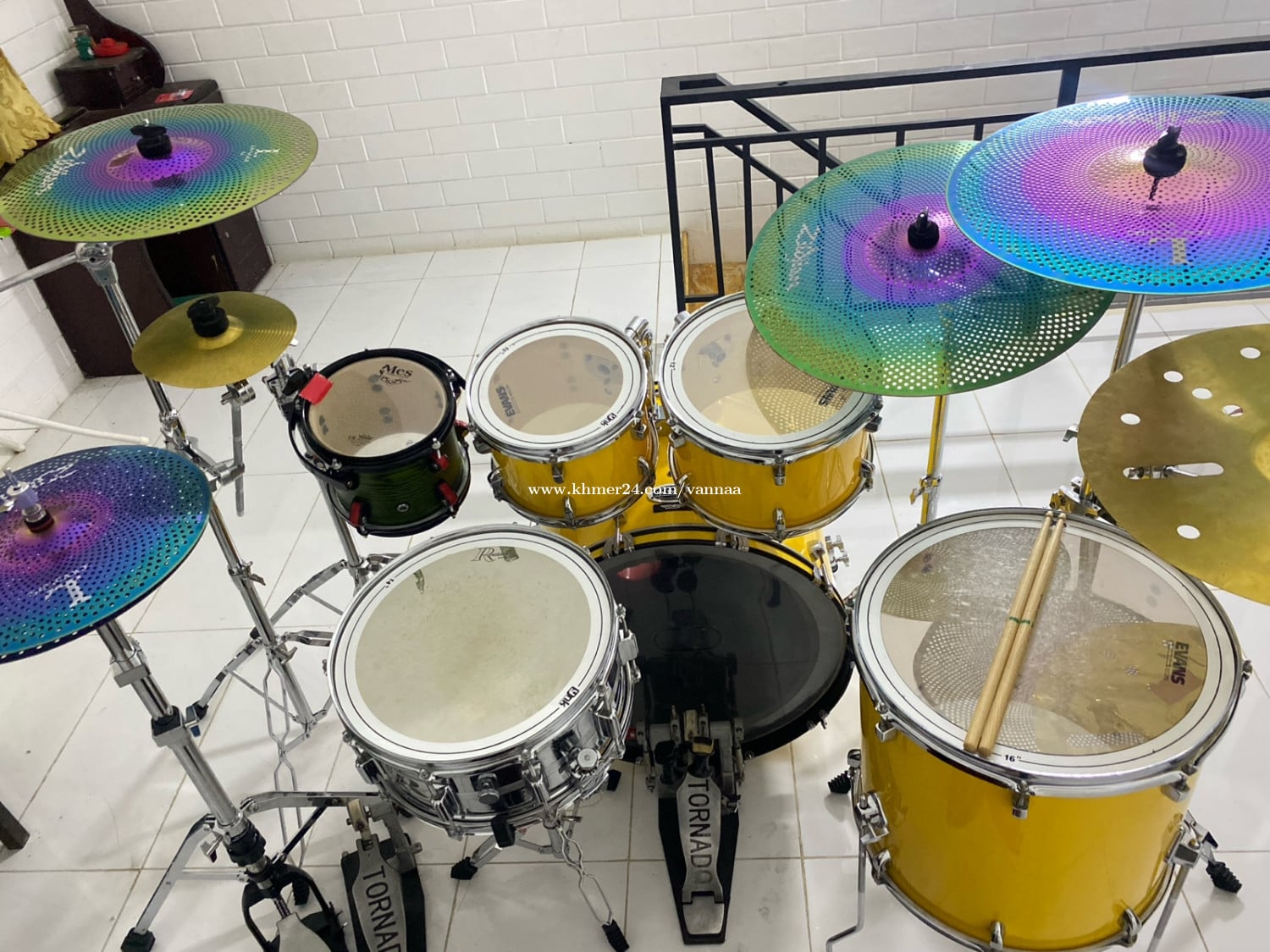 ស្គរលក់ដូចរូបទាំងអស់: នៅ98% មិនដែលលេងខាងក្រៅទុកតែក្នុងបន្ទប់មិនសូវបានហាត់ទេ ឧបករណ៍ដែលទទួលបាន _ Hi Hat 14>2 Crash16 Crash18 Rize20 China18ozne Slash8 Set tom 8 10 12 16 Snare 14 ខ្ចៅ10 ទាំង2 Sanre ដែក និង ឈើ Dubple kick Brand Tornado ស្បែកទើបដូរហើយ Evan Full set