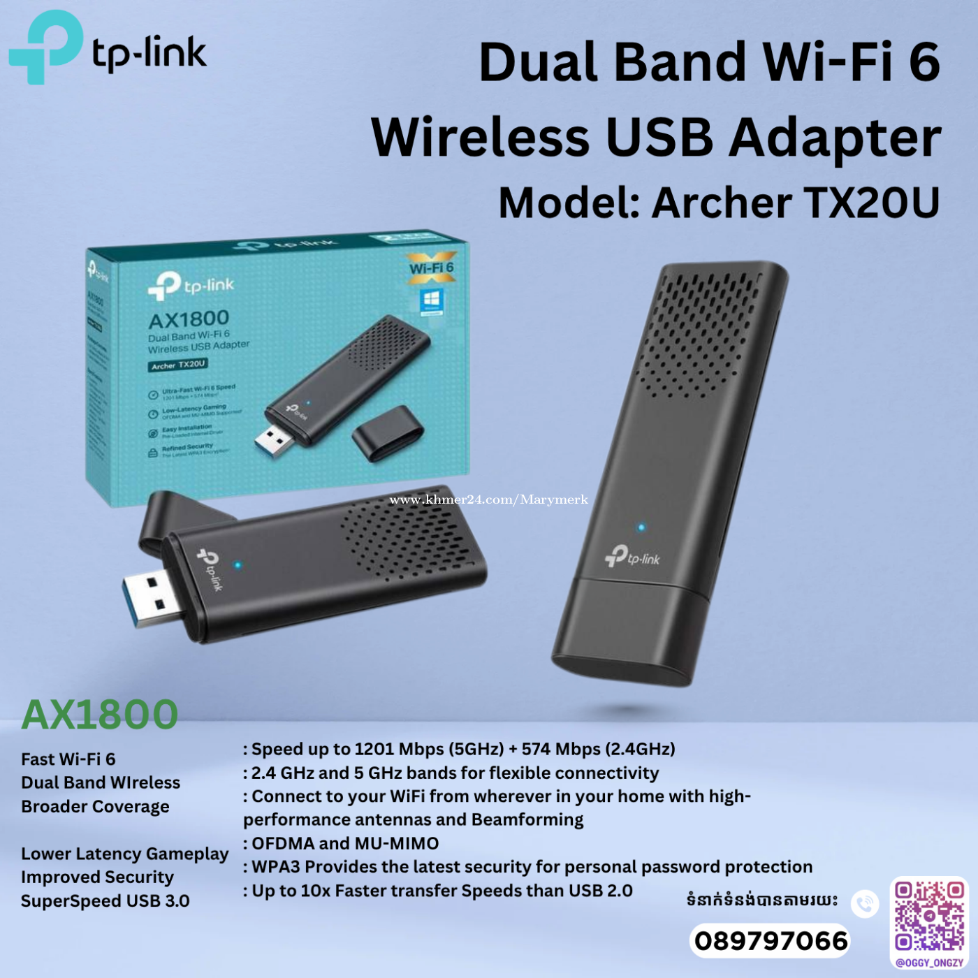 Brand: TP-Link / Wi-Fi Router ✅Model: Archer TX20U 👉 សេវាដឹកអាស្រ័យទៅតាមទីតាំង ☎ទំនាក់ទំនងជាវផលិតផល: ☎️Smart: 0963430xxxClick To Call ☎️Cellcard: 089797xxxClick To Call 📱ចុចចូល Telegram: https://t.me/Oggy_ongzy 👉Facebook Page: #TpSolution 🏠ផ្ទះលេខ 20N ផ្លូវលេខ K4B សង្កាត់អូរបែកក្អម ខណ្ឌសែនសុខ រាជធានីភ្នំពេញ. 🗺ប្រាប់ពីទីតាំង:goo.gl/maps/2ZAZ6Bb6P6jPUS588