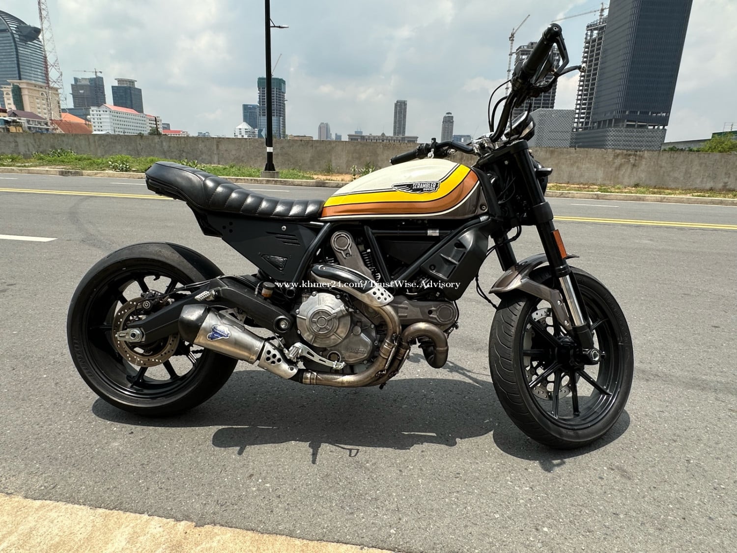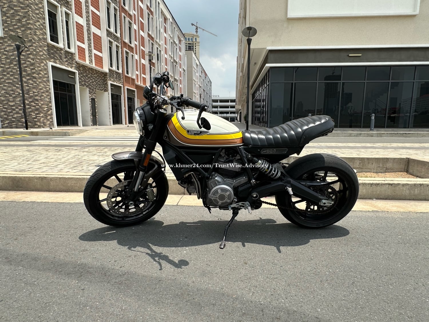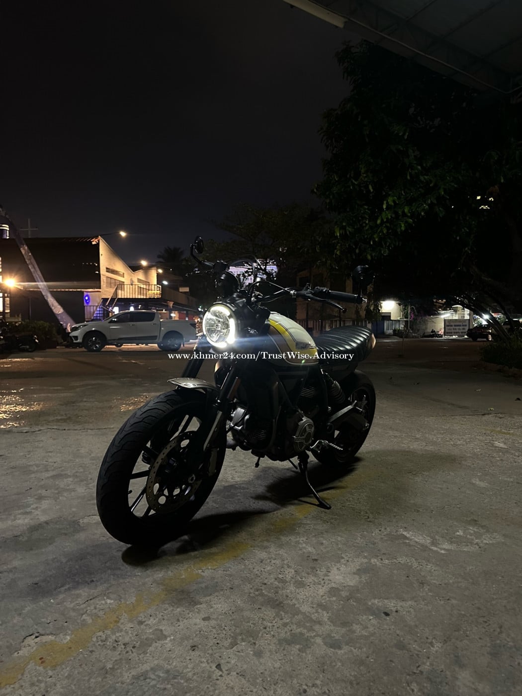 Motorcycle for sell 4500$ ដាច់ promotion for only this month! លក់ក្រោមទីផ្សារច្រើន Model : Ducati scrambler 800 Mach 2.0 Special edition 💥 Year: 2018 ✅things i already changed ✅the oil+ oil filter ✅timing belt Noted: Bike modified to my personal liking, perfect engine have never crash, full tax and document 👌 Classic bike ម៉ាសុីនមិនដែលដោះ ទិញទៅជិះយកតែម្តង ពន្ធពេញឆ្នាំ ម៉ូតូទម្លាក់កុងតឺន័រ ម្ចាស់ដើម✅ បញ្ចាក់: ម៉ូតូលេងតាមការស្រឡាញ់របស់ខ្ញុំ បើបងបងណាស្រឡាញ់ពិតអាចទាក់ទងមកបាន 077849xxxClick To Call☎️