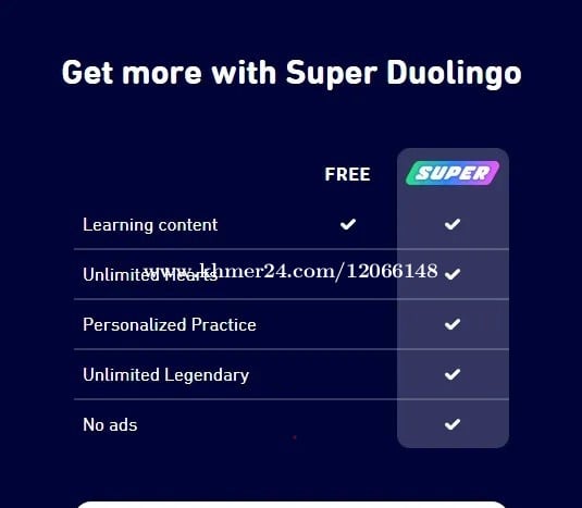 * Duolingo Super plan 1Year Upgrade 👉 ពេលទិញត្រូវផ្ញើ Duolingo email របស់អ្នក ------------------------------------------------------------------------- * ទំនាក់ទំនងទិញទិញឬសាកសួរពត៌មានបន្ថែម Join us on Telegram: https://bit.ly/2RO7pHS Chat to me on Telegram: https://bit.ly/3QrGo63