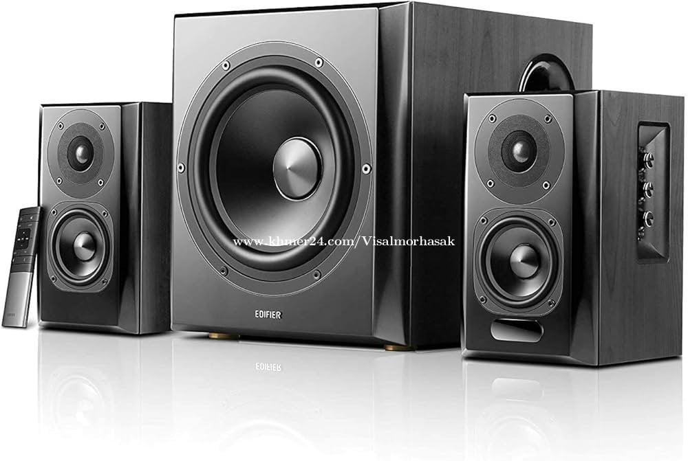 Total Power Output (RMS): 150W Treble: 15W + 15W Midrange/Bass (satellites): 25W + 25W Subwoofer: 70W Bluetooth 5.0 ថ្មី