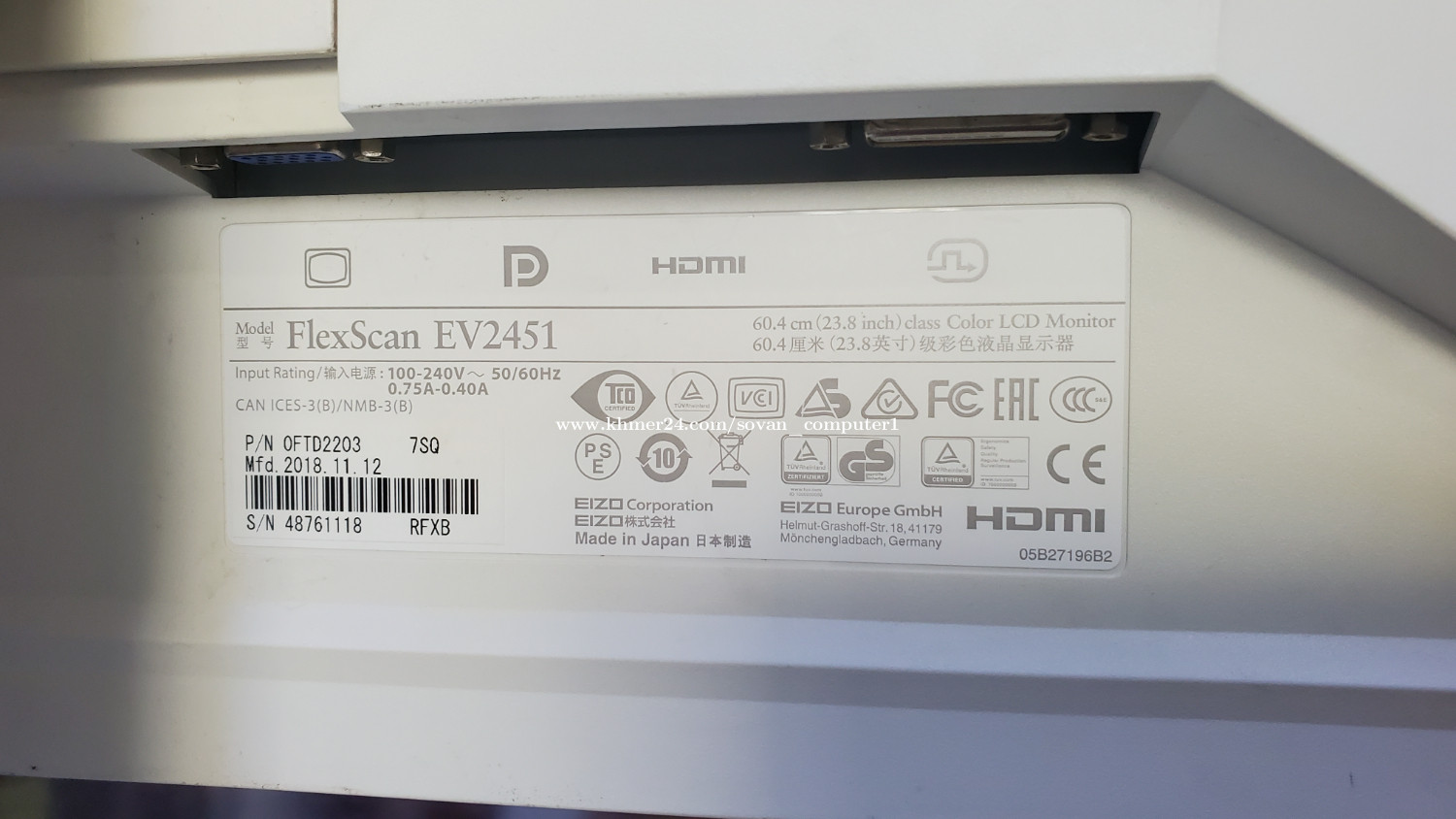 EIZO FlexScan EV2451 -24 inch W-LED Monitor Port : HDMI / DP / DVI / USB 3.0 / Audio in /out ---------- សម្រាប់ព័ត៌មានបន្ថែមសូមទំនាក់ទំនងមកយើងខ្ញុំ ☎️012463xxxClick To Call / 093317xxxClick To Call 📡Telegram : https://t.me/sovancomputer 🌏www.sovancomputer.com 🫰Tik Tok : www.tiktok.com/@sovancomputer 🧚♂️Khmer24 : https://www.khmer24.com/sovan_computer1 ▶️Youtube Channel : https://www.youtube.com/@sovancomputer2958/videos 🗺ផែនទីហាងយើងខ្ញុំ https://goo.gl/maps/6oMaL4vCWuufnt83A 🏠អាស័យដ្ធាន Address : ផ្ទះលេខ ១៨B ផ្លូវ៣៣៦ សង្កាត់វាលវង់ ខណ្ឌ៧មករា រាជធានីភ្នំពេញ (ខាងក្រោយវត្តព្រះពុទ្ធមានបុណ្យ)