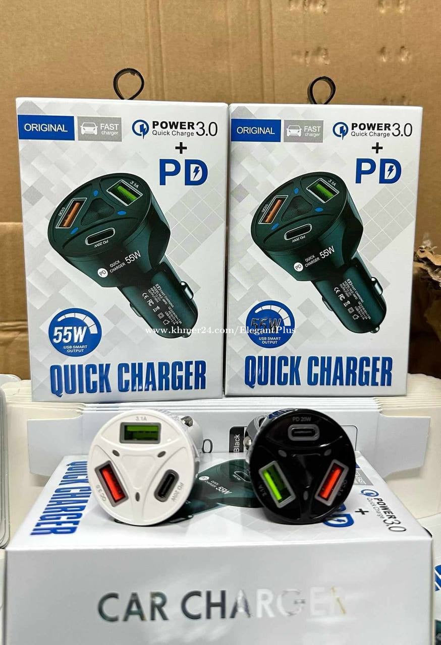 ដុំសាកឡាន 55W 2USB +1PD 20w ទំនាក់ទំនង៖ 069833xxxClick To Call https://t.me/ElegantPlusCambodia បោះដុំ និងរាយគ្រឿងបន្លាស់ទូរស័ព្ទ ហ្រ្វីដឹក 24ខេត្តក្រុង