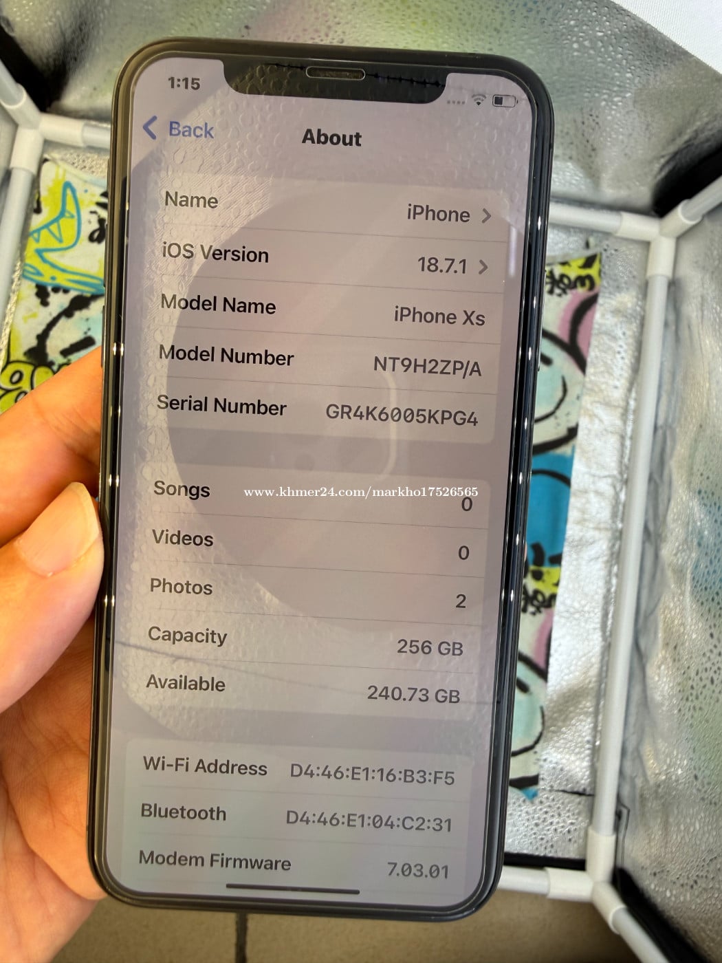 លក់ iPhone XS 256GB ពណ៌ខ្មៅ (Space Gray) ស្ថានភាពថ្មីស្ទើតែ 100% គ្មានស្នាមឆ្កូតធំៗទេ មើលទៅដូចទើបជាវពី Apple Store អស់។ សម្បកខ្លួនរលោង ប៉ះហើយស្មើរល្អខ្លាំង ស័ក្តិសមបំផុតសម្រាប់ប្រមូល។ ខ្ញុំបានថែរក្សាវាដូចកូនដែរ សង្ឃឹមថានឹងជួបម្ចាស់ថ្មីដែលស្រឡាញ់ និងថែរក្សាវាដូចខ្ញុំដែរ។ ចាប់អារម្មណ៍សូមទាក់ទង៖ 📞 និយាយអង់គ្លេស៖ 095221xxxClick To Call និយាយខ្មែរ៖ 070337xxxClick To Call ឬ 011337xxxClick To Call Selling an iPhone XS 256GB Space Gray in near-mint condition! Barely any signs of use, no major scratches or dents—looks and feels almost brand new, super smooth to the touch. Perfect piece for collectors! I’ve babied this phone the whole time and hope it finds a new owner who’ll love and care for it just as much. Interested? Feel free to reach out! 📞 English: 095221xxxClick To Call Khmer: 070337xxxClick To Call or 011337xxxClick To Call