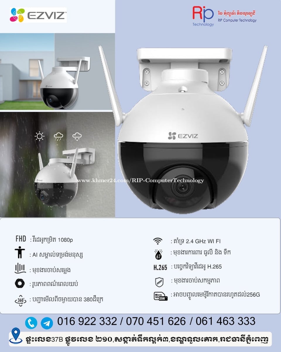 ✅ EZVIZ Smart Home WiFi Camera H9C ភ្នែក2 (2 Lens) + Memory 64GB = 70$ + Memory 128GB= 75$ *សេវាតំឡើង 12$