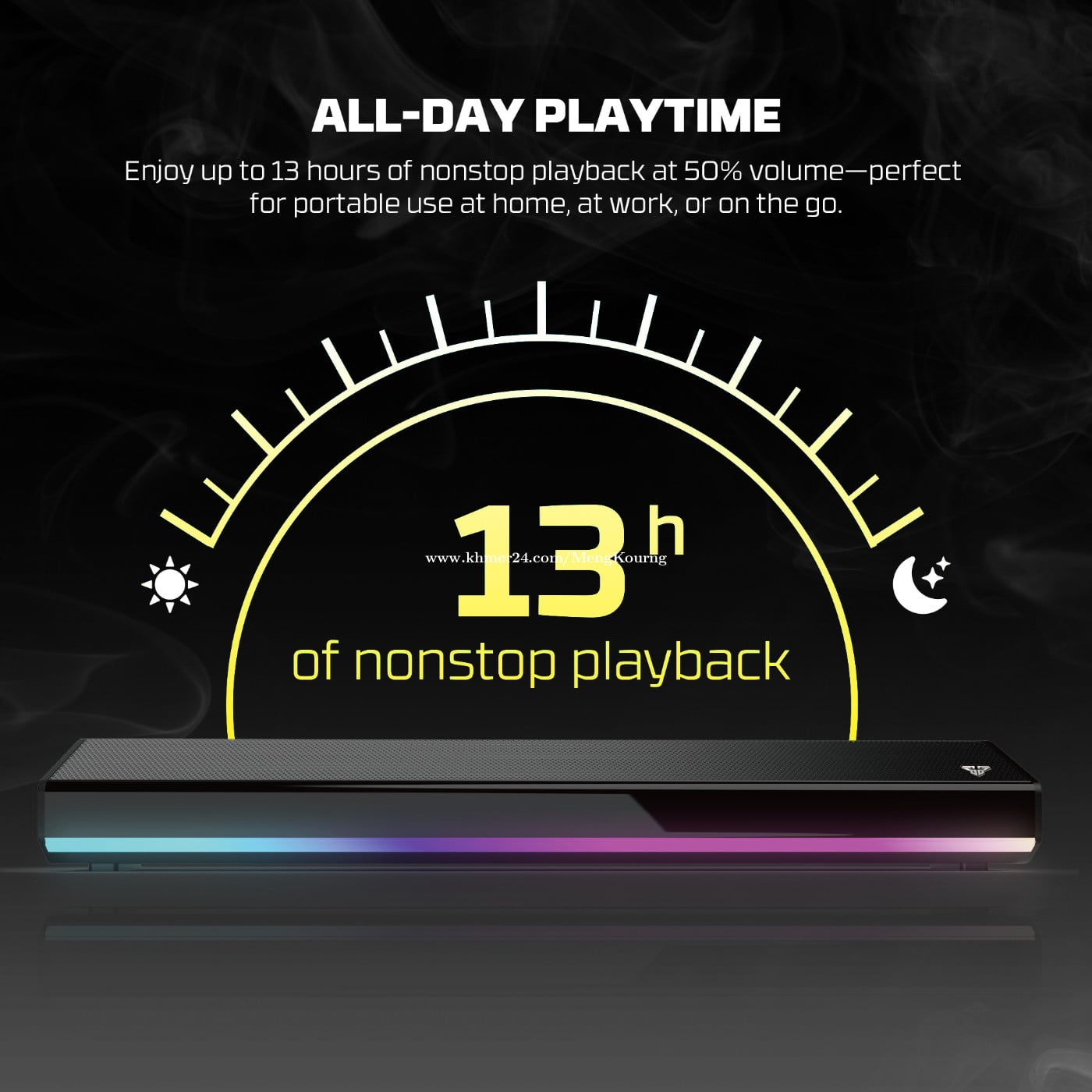 Fantech Bluetooth Speaker Groove Bar Pro BS162 ✅ Connectivity: BT5.4, TF card, USB Flash Drive, AUX ✅ Driver size: 2x57mm ✅ Output: 10W RMS ✅ Build-in Microphone, RGB ✅ Multi-function button control ✅ Battery up to 13 Hours 👍1 YEAR WARRANTY *This price not include delivery 🛒កម្ម៉ង់ឥឡូវនេះ 👇👇👇 ផ្នែកលក់ 012787xxxClick To Call https://t.me/cmksale1 Join ⏬ Telegram 🔔 https://t.me/+pMlYdQSBYkEyYTU1 ដើម្បីទទួលបាន ព័ត៌មានថ្មីៗ លម្អិត និងការផ្តល់ជូនពិសេសៗ ពីជួម៉េងគួងកុំព្យូទ័រ 🌐cmkcomputer.com 🌐https://www.facebook.com/MengKourngComputer 🌐https://www.facebook.com/cambodiafantech