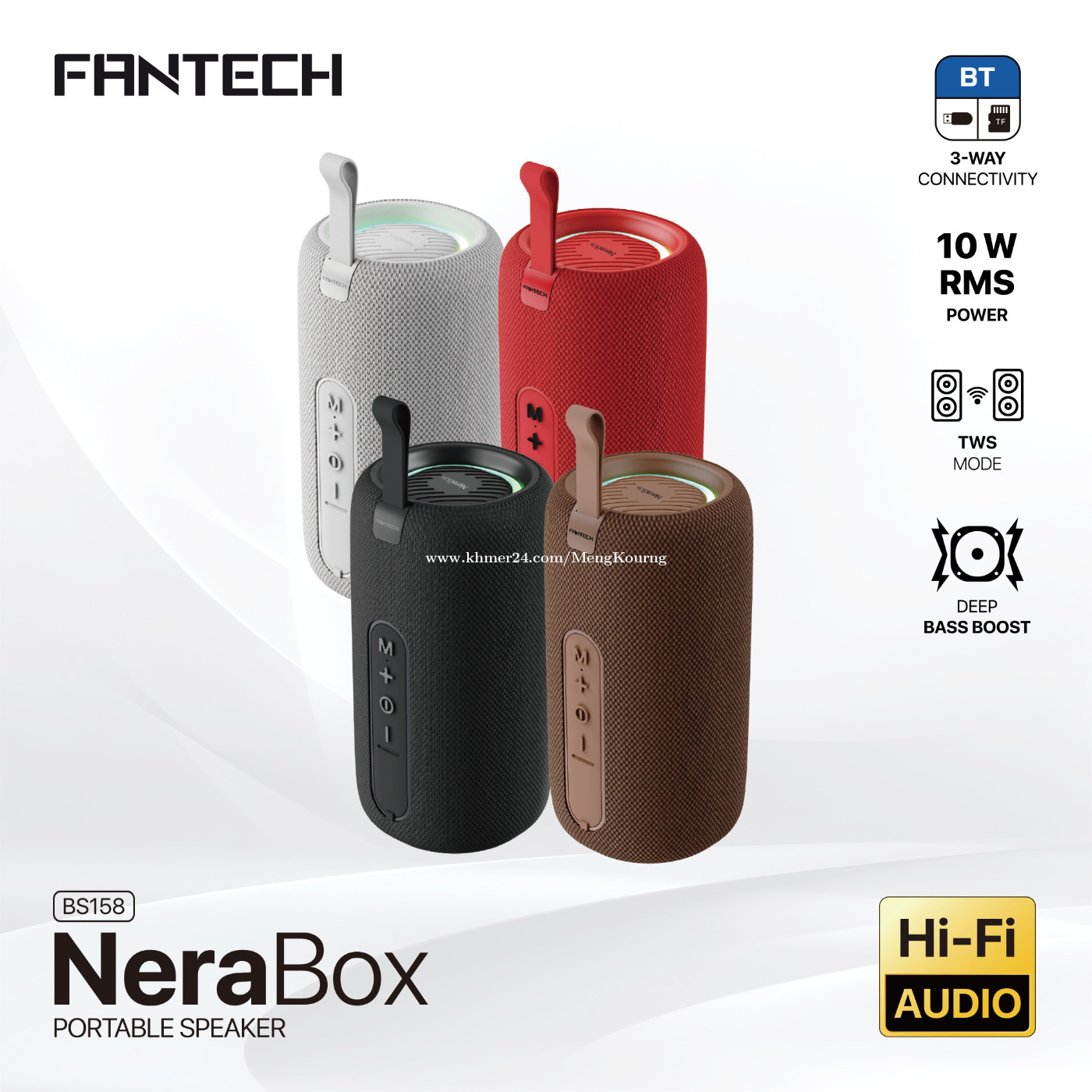 Fantech Bluetooth Speaker Nera Box BS158 ✅ Connectivity: BT5.4, TF card, USB Flash Drive ✅ Driver size: 57mm ✅ Output: 10W RMS ✅ Build-in Microphone, TWS mode ✅ Multi-function button control ✅ Battery up to 9 Hours, LED RGB Color : Black, Grey, Red 👍1 years warranty *This price not include delivery 🛒កម្ម៉ង់ឥឡូវនេះ 👇👇👇 ផ្នែកលក់ 012787xxxClick To Call https://t.me/cmksale1 Join ⏬ Telegram 🔔 https://t.me/+pMlYdQSBYkEyYTU1 ដើម្បីទទួលបាន ព័ត៌មានថ្មីៗ លម្អិត និងការផ្តល់ជូនពិសេសៗ ពីជួម៉េងគួងកុំព្យូទ័រ 🌐cmkcomputer.com 🌐https://www.facebook.com/MengKourngComputer 🌐https://www.facebook.com/cambodiafantech