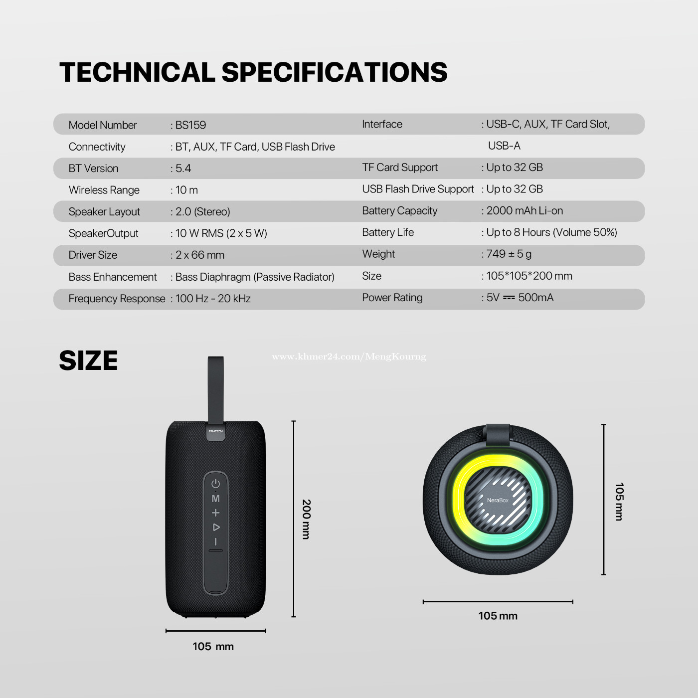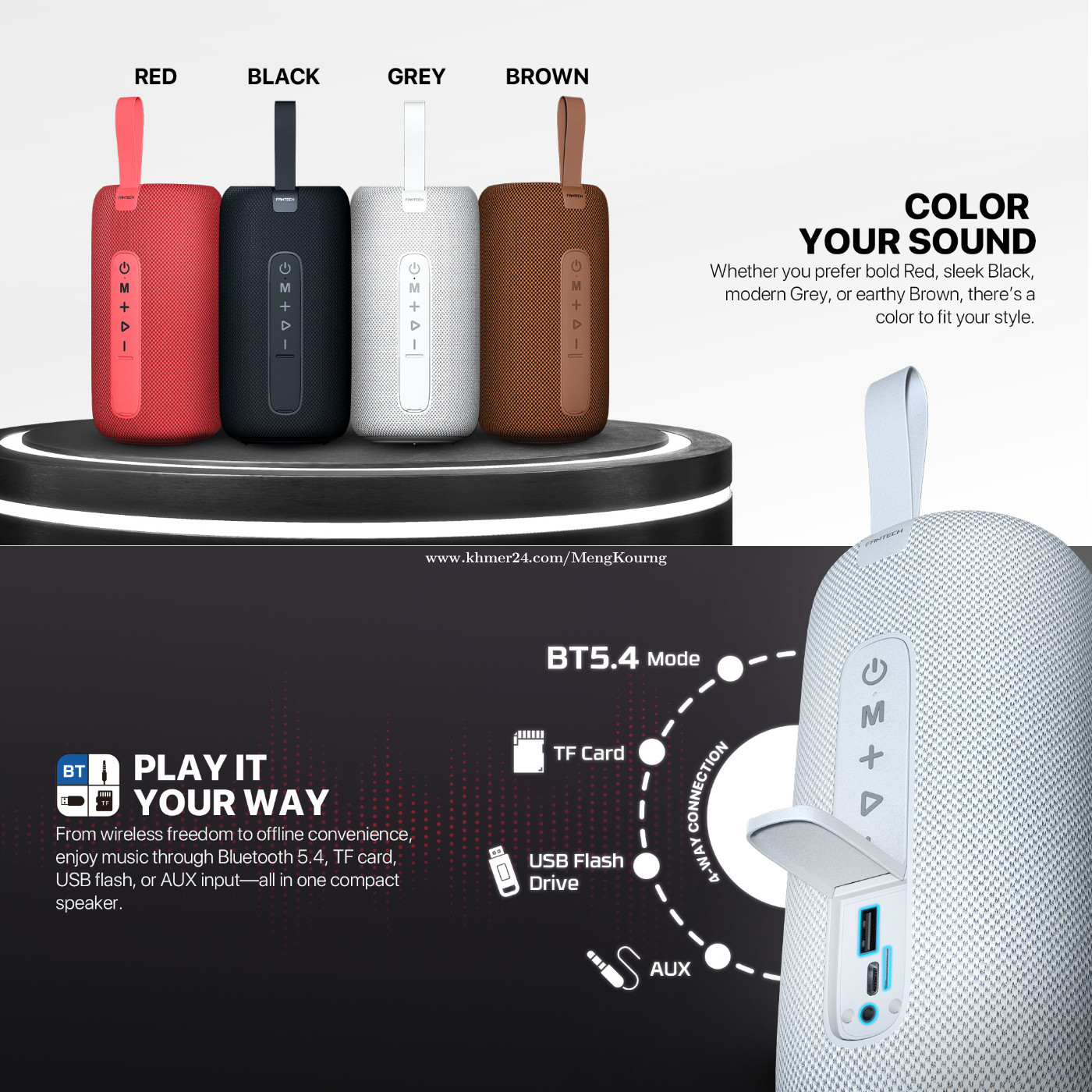 Fantech Bluetooth Speaker Nera Box BS159 ✅ Connectivity: BT5.4, TF card, USB Flash Drive, AUX ✅ Driver size: 2 x 66mm ✅ Output: 10W RMS ✅ Build-in Microphone, TWS mode ✅ Multi-function button control ✅ Battery up to 8 Hours, LED RGB Color : Black, Grey, Red 👍1 YEAR WARRANTY *This price not include delivery 🛒កម្ម៉ង់ឥឡូវនេះ 👇👇👇 ផ្នែកលក់ 012787xxxClick To Call https://t.me/cmksale1 Join ⏬ Telegram 🔔 https://t.me/+pMlYdQSBYkEyYTU1 ដើម្បីទទួលបាន ព័ត៌មានថ្មីៗ លម្អិត និងការផ្តល់ជូនពិសេសៗ ពីជួម៉េងគួងកុំព្យូទ័រ 🌐cmkcomputer.com 🌐https://www.facebook.com/MengKourngComputer 🌐https://www.facebook.com/cambodiafantech