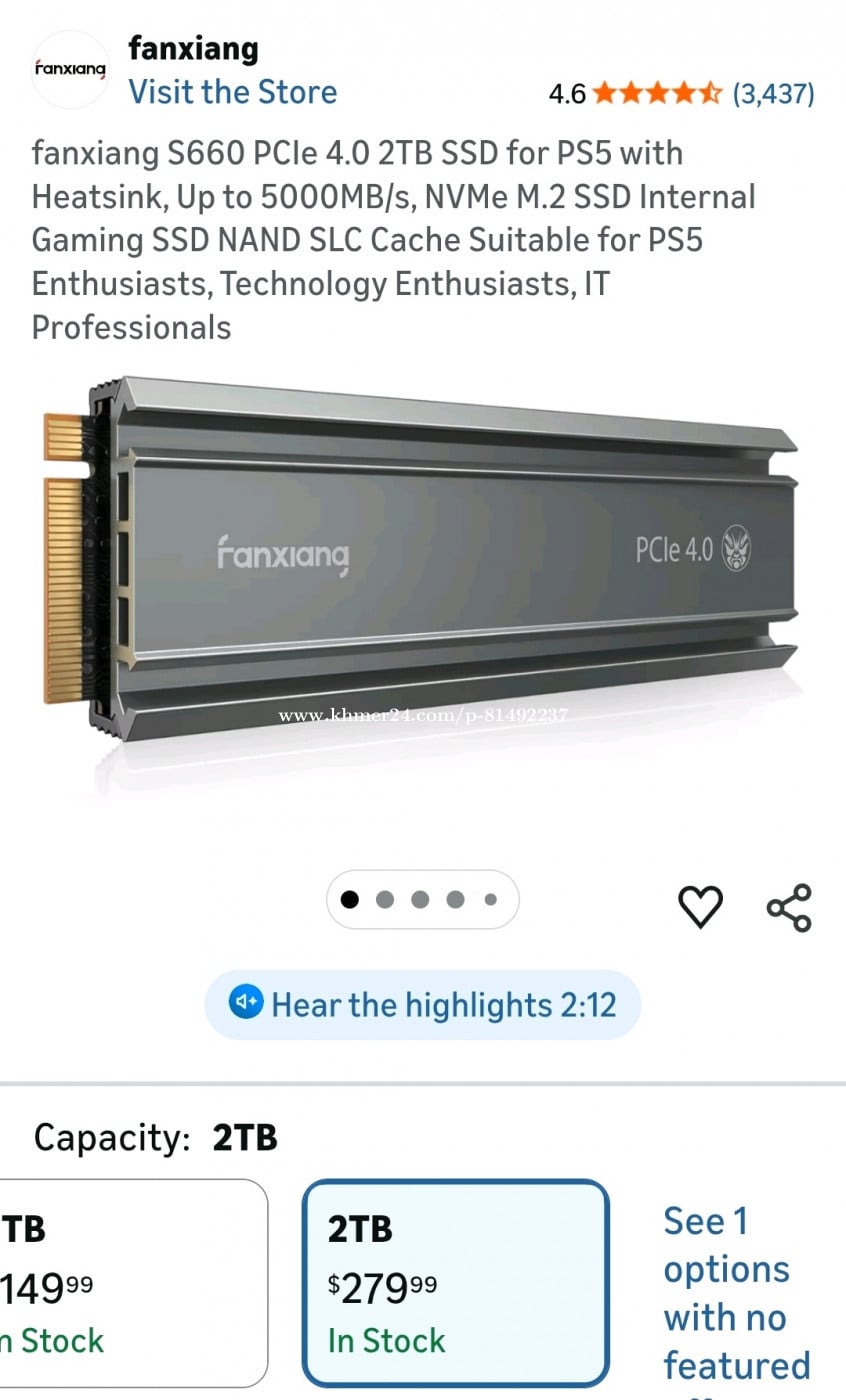 fanxiang S660 PCIe 4.0 2TB SSD for PS5 with Heatsink, Up to 5000MB/s, NVMe M.2 SSD Internal Gaming SSD NAND SLC Cache Suitable for PS5 and Desktop Brand-new. Last one.