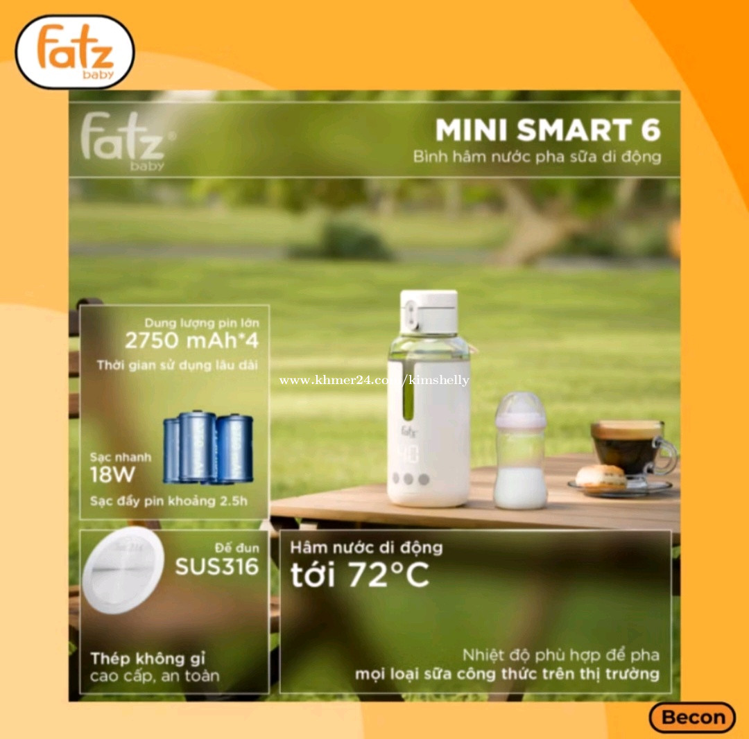 Fatz Ready handheld bottle warmer / The Fatzbaby Mini Smart 6 portable bottle warmer is fully battery-operated, heating and keeping milk warm - Battery capacity: 2750mAh x 4 (11,000 mAh) - 220ml - 26x13x9 cm