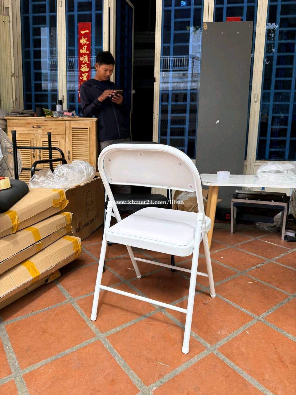 Folding Chair - Stock white and Black color - Price 16$ - support weight 150kg - metal frame best strong + For Best offer and Fast response please contact us telegram 📥 🛋️Telegram: https://t.me/@li_lina168 🏗️Tel 0965395xxxClick To Call 🏡 view more items please Join our channel: https://t.me/Linavok1689