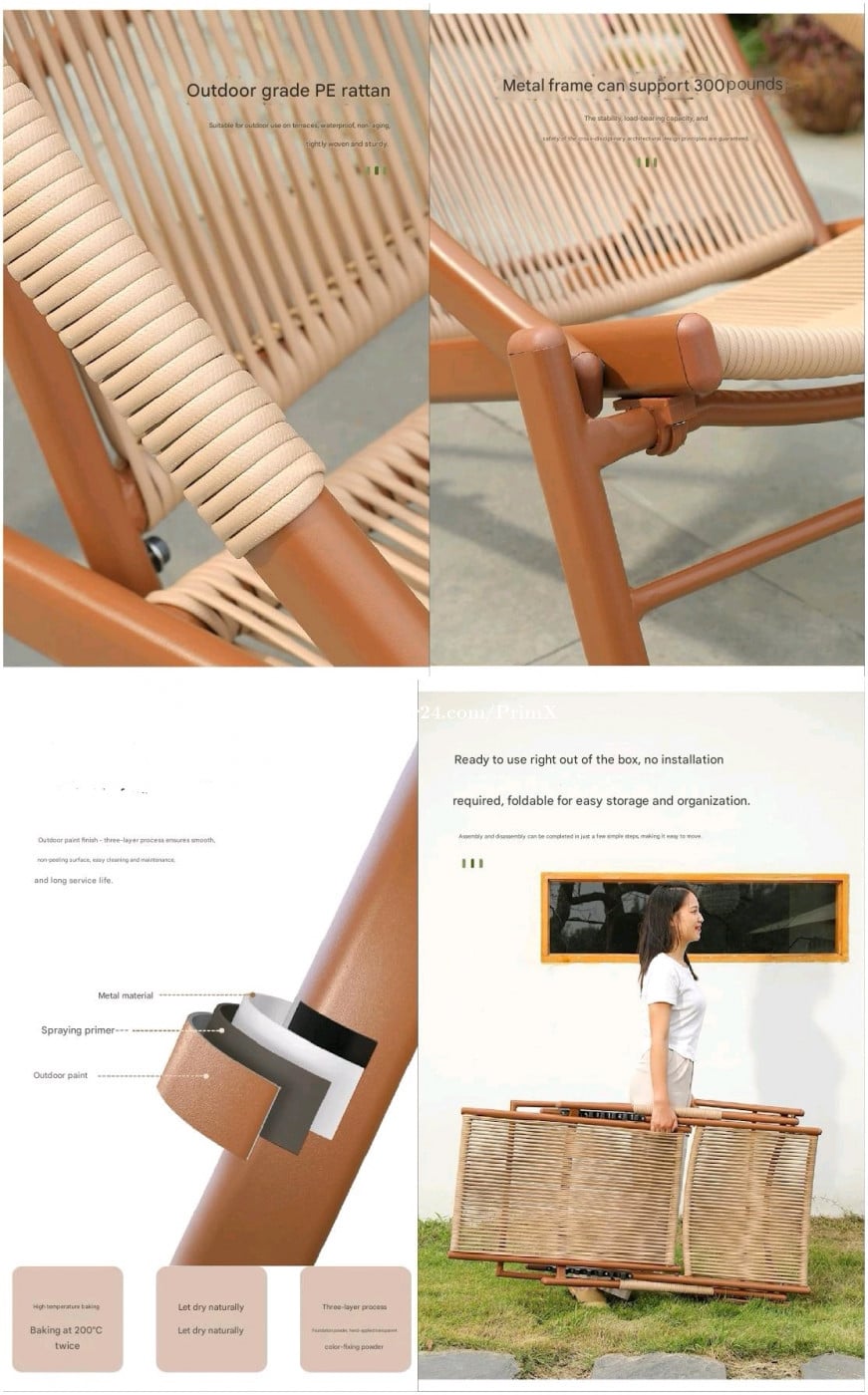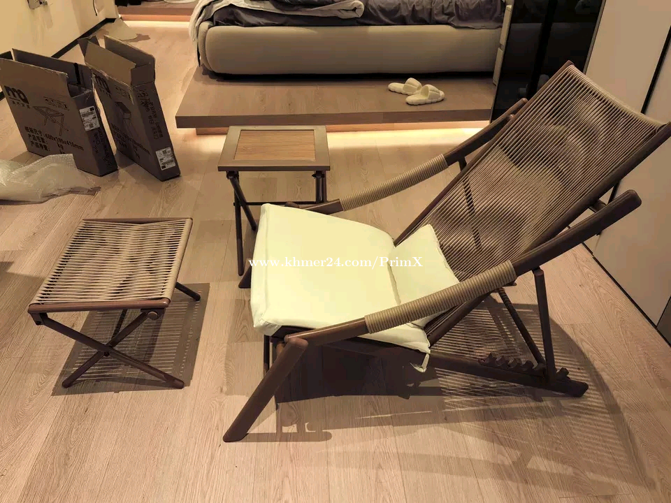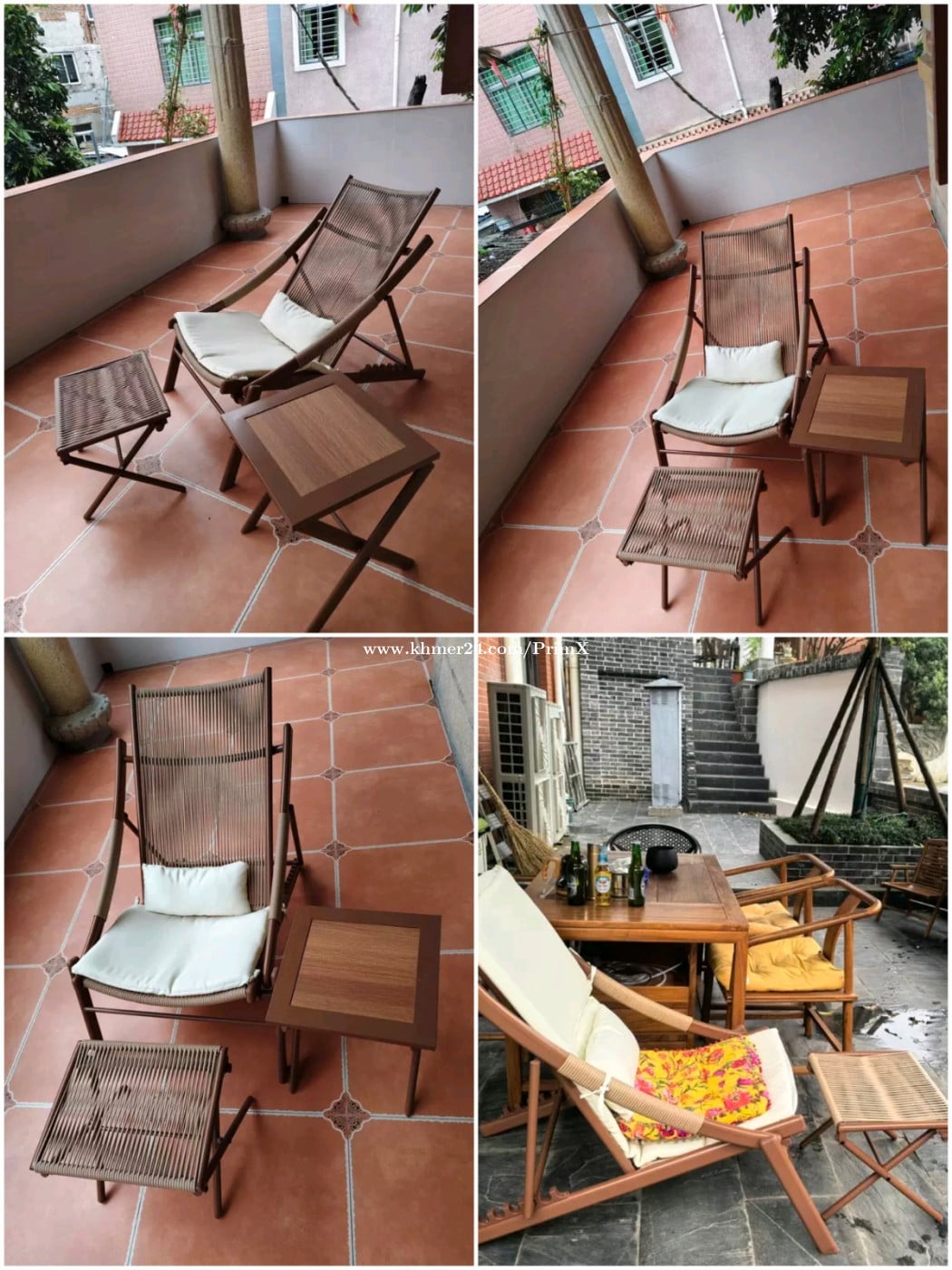 Folding Recliner Balcony Leisure Lazy Sofa Chair Lunchtime Nap Rattan Chair Courtyard Garden Woven Rattan Outdoor Table and Chair $212.00 (set consistent of chair, foot rest, and tea table) 100 % new and packed material: steel base + special outdoor use rattan (for outdoor use) goods in Phnom Penh but can send to other locations (Virak Buntham( Telegram @PrimX_PP