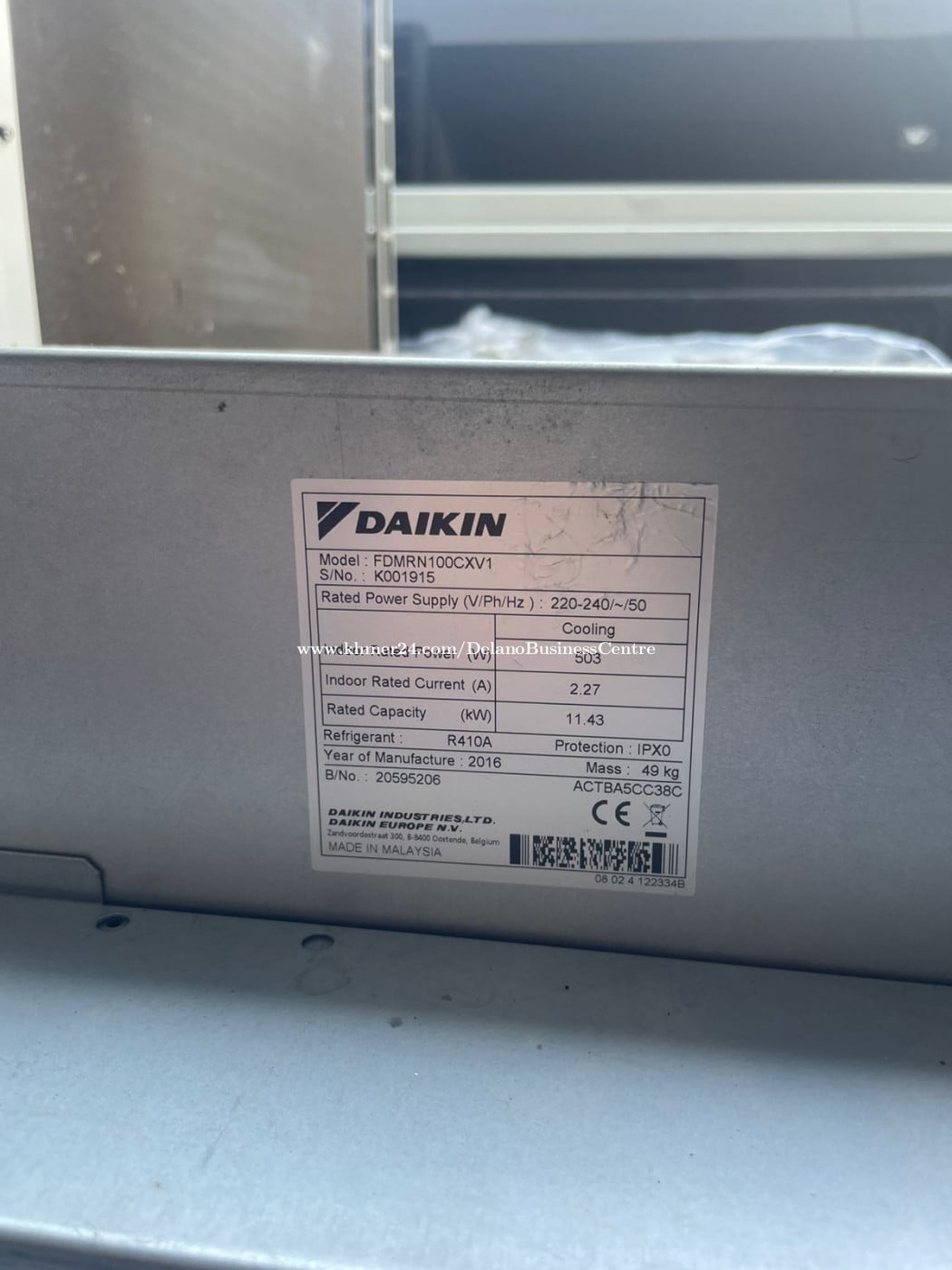 90% Good condition Brand: Daikin Model: FDMRN100CXV1 Horse Power: 4HP Type: Ceiling Concealed Duct Aircon Gas: R410 Come with: Complete set indoor and outdoor, Air duct, remote