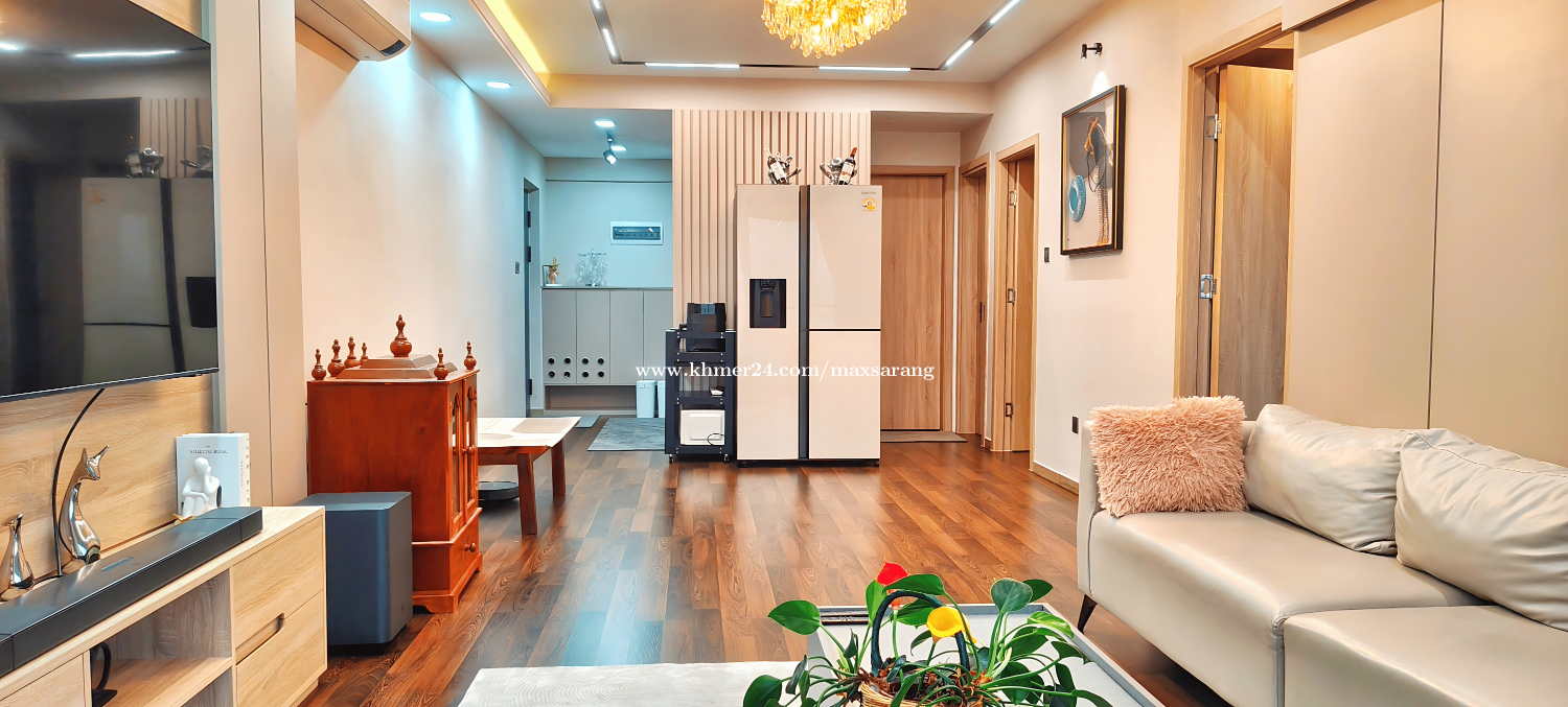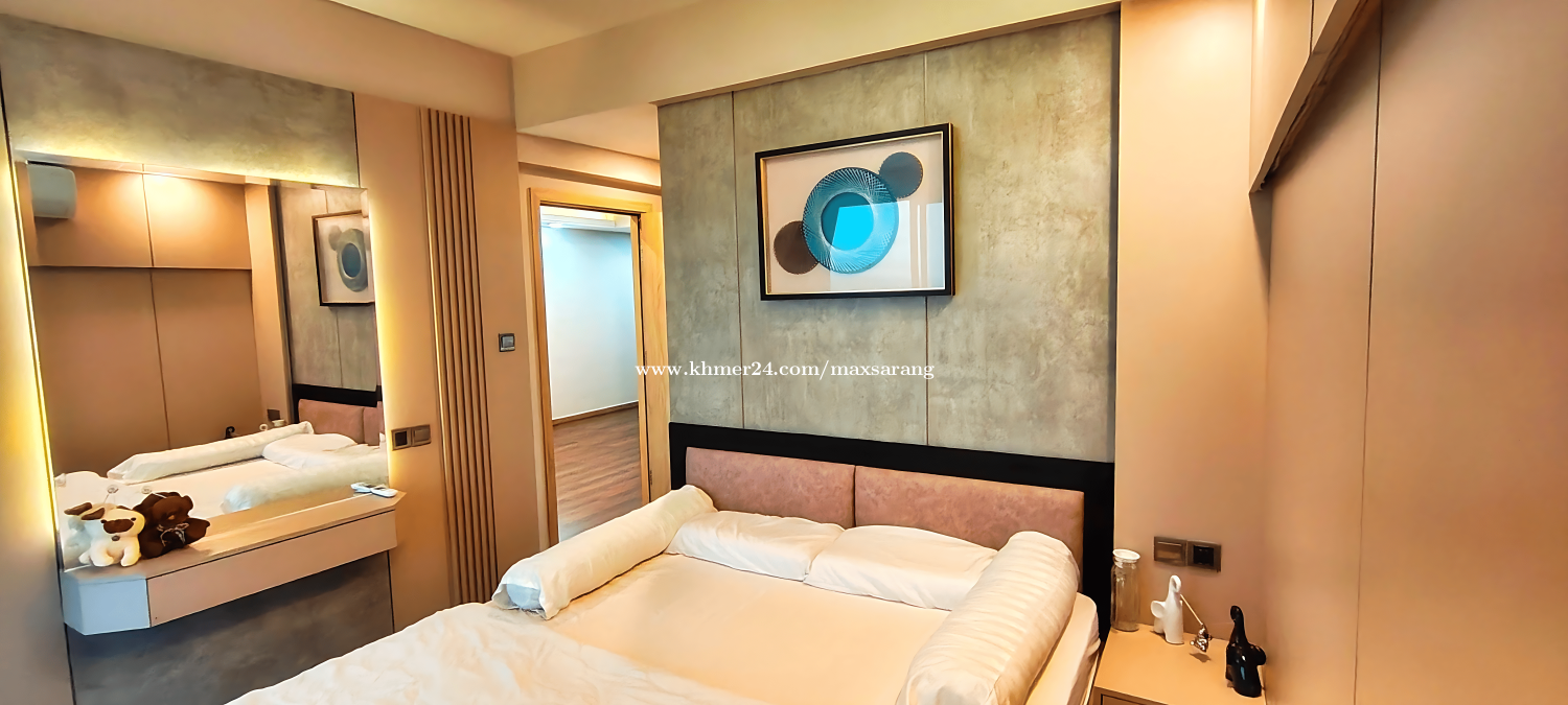 This stylish 3-bedroom, 2-bathroom Wooden Flooring condo is available for rent in Chroy Changvar with a beautiful river-view balcony on the 19th floor. Fully furnished with leather sofa, double-door refrigerator, washing machine, 4 Air Conditioner, beds with mattresses, full kitchenware, rice cooker, air fryer, Samsung 65 inch 4K TV, JBL 9.1 soundbar, and 2 rechargeable sensor dustbins. Balcony includes outdoor table and chairs for relaxing by the river. Perfect for families or professionals seeking a ready-to-move-in home in a peaceful yet convenient location.