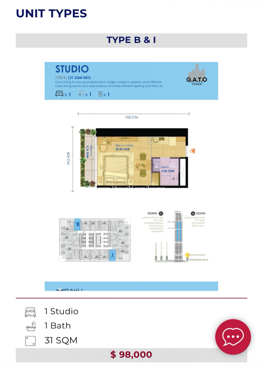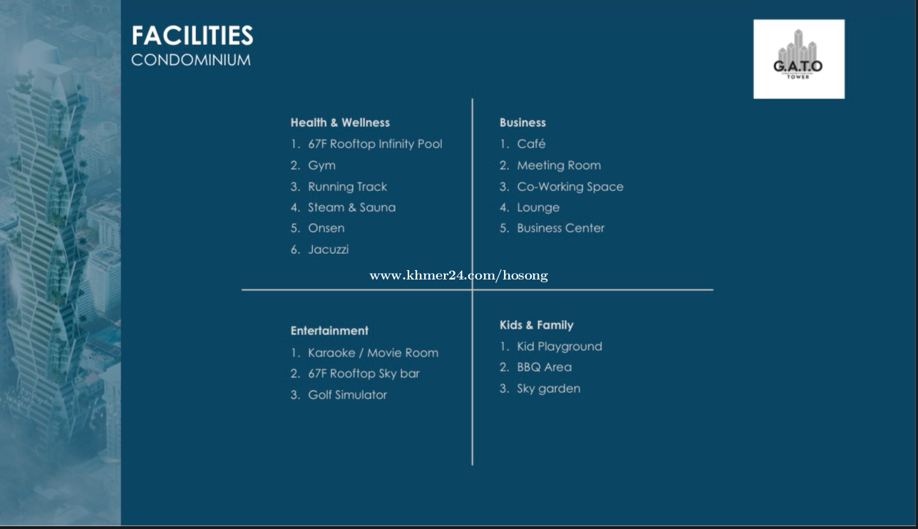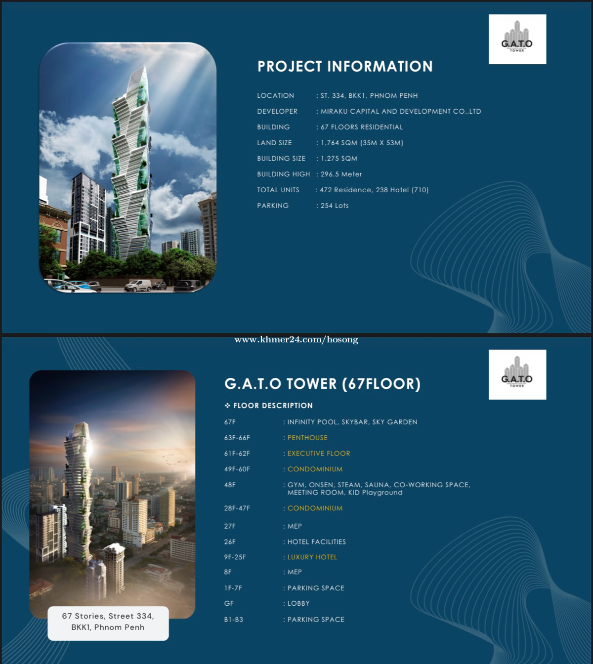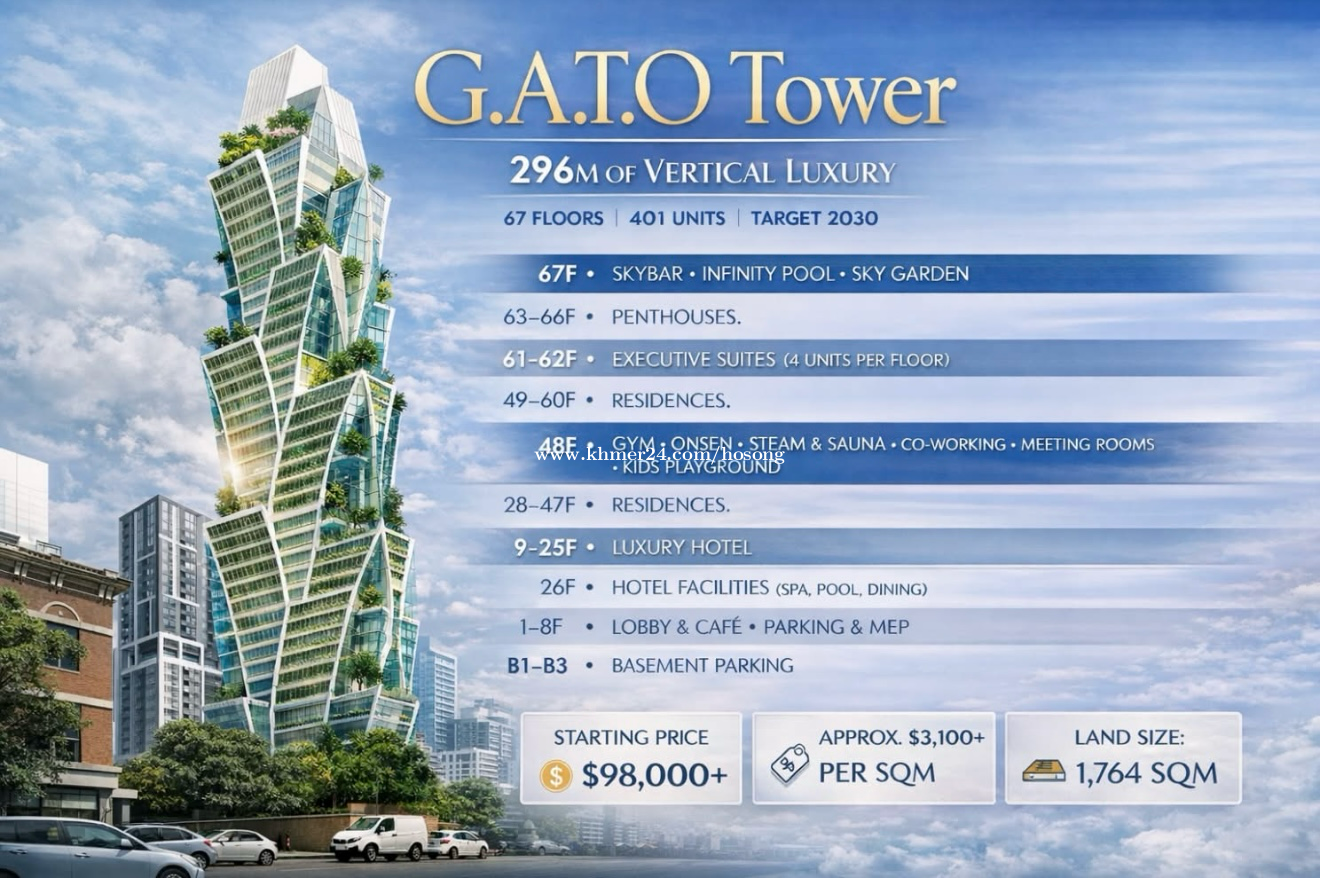 ⸻ G.A.T.O TOWER:プノンペンの新たなランドマークとなる、総事業費1億米ドルの67階建て新築レジデンシャルプロジェクト G.A.T.O TOWERは、日本および現地投資家によって開発される大規模不動産プロジェクトで、総投資額は約1億米ドルにのぼります。 プノンペン・ボンケンコン1(BKK1)地区に位置するG.A.T.O TOWERは、67階建ての近代的高層開発で、高級分譲コンドミニアムおよび国際基準のラグジュアリーホテルを備えています。 本プロジェクトは2026年第1四半期後半に着工予定で、2030年の完成を目指しています。 🌸 高水準の日本品質と確かな信頼性 67階建てのランドマーク「G.A.T.O TOWER」は、2月に正式ローンチおよび市場デビューを予定しています。 ✅ 一等地ロケーション:BKK1・ストリート334 ✅ 予約金わずか500米ドル、最大48か月の金利0%分割払い ✅ 全67階建て ✅ 専有面積:31㎡~443㎡ 卓越した立地と、非常に競争力のある価格設定にご期待ください。 ⸻ 周辺環境・利便施設 ・各国大使館 ・国際NGO ・多彩なレストラン ・カフェ・コーヒーショップ ・コンビニエンスストア・ミニマート ・ショッピングモール ・病院・クリニック ・インターナショナルスクール ・銀行・ATM ・ナイトライフ&エンターテインメント施設 ・ジム・スポーツ施設 ・ホテル ⸻ プロジェクト概要 G.A.T.O Towerは、プノンペンで最も洗練され国際色豊かな一等地、BKK1の中心に位置する67階建ての高級複合型超高層ビルです。 開発は日本のMiraku Capitalが手がけ、日本ならではの精密さ、効率性、ミニマルなデザイン美学と、活気あるカンボジアの都市ライフスタイルを融合させた、新たな都市ランドマークとして構想されています。 本プロジェクトは、高級レジデンス、ハイエンドホテル、厳選された商業・ライフスタイル空間、そして世界水準の共用施設で構成され、「住む・泊まる・働く・投資する」を一体化した総合的な都市エコシステムを実現します。 プノンペンのスカイラインを一望できる眺望、機能的で洗練された間取り、高品質な仕上げ、国際基準を満たす充実したアメニティが魅力です。 戦略的なBKK1の立地、洗練された建築コンセプト、そして多機能な複合開発としての完成度により、G.A.T.O Towerは、上質な都市生活を求める居住者のみならず、長期的な資産価値を重視する投資家にとっても非常に魅力的なプロジェクトです。 ⸻ プロジェクト詳細 ・プロジェクト名:G.A.T.O Tower ・デベロッパー:Miraku Capital and Development Co., Ltd.(日本) ・建物高さ:約296メートル ・階数:67階 ・敷地面積:約1,764㎡ ・総戸数:710戸 – レジデンシャルユニット:472戸 – ホテルユニット:238戸 ・開発形態:複合用途開発 (ホテル+レジデンス+エグゼクティブスイート+ペントハウス) ・完成予定:2030年頃 ・想定販売開始価格:約98,000米ドル~ ・想定平均単価:約3,100米ドル/㎡(専有面積) 📲📲 𝟬𝟭𝟬 𝟳𝟳 𝟮𝟭 𝟴𝟰: Telegram & WhatsApp ( ខ្មែរ , Việt Nam , English , 中文 ) 🔗https://t.me/directorsaleofficial369