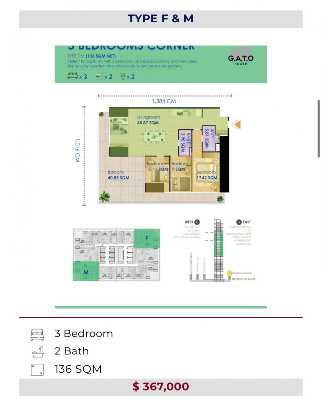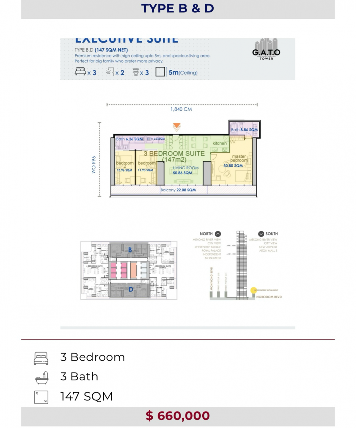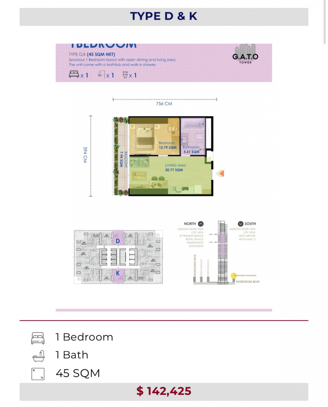 ⸻ G.A.T.O TOWER:プノンペンの新たなランドマークとなる、総事業費1億米ドルの67階建て新築レジデンシャルプロジェクト G.A.T.O TOWERは、日本および現地投資家によって開発される大規模不動産プロジェクトで、総投資額は約1億米ドルにのぼります。 プノンペン・ボンケンコン1(BKK1)地区に位置するG.A.T.O TOWERは、67階建ての近代的高層開発で、高級分譲コンドミニアムおよび国際基準のラグジュアリーホテルを備えています。 本プロジェクトは2026年第1四半期後半に着工予定で、2030年の完成を目指しています。 🌸 高水準の日本品質と確かな信頼性 67階建てのランドマーク「G.A.T.O TOWER」は、2月に正式ローンチおよび市場デビューを予定しています。 ✅ 一等地ロケーション:BKK1・ストリート334 ✅ 予約金わずか500米ドル、最大48か月の金利0%分割払い ✅ 全67階建て ✅ 専有面積:31㎡~443㎡ 卓越した立地と、非常に競争力のある価格設定にご期待ください。 ⸻ 周辺環境・利便施設 ・各国大使館 ・国際NGO ・多彩なレストラン ・カフェ・コーヒーショップ ・コンビニエンスストア・ミニマート ・ショッピングモール ・病院・クリニック ・インターナショナルスクール ・銀行・ATM ・ナイトライフ&エンターテインメント施設 ・ジム・スポーツ施設 ・ホテル ⸻ プロジェクト概要 G.A.T.O Towerは、プノンペンで最も洗練され国際色豊かな一等地、BKK1の中心に位置する67階建ての高級複合型超高層ビルです。 開発は日本のMiraku Capitalが手がけ、日本ならではの精密さ、効率性、ミニマルなデザイン美学と、活気あるカンボジアの都市ライフスタイルを融合させた、新たな都市ランドマークとして構想されています。 本プロジェクトは、高級レジデンス、ハイエンドホテル、厳選された商業・ライフスタイル空間、そして世界水準の共用施設で構成され、「住む・泊まる・働く・投資する」を一体化した総合的な都市エコシステムを実現します。 プノンペンのスカイラインを一望できる眺望、機能的で洗練された間取り、高品質な仕上げ、国際基準を満たす充実したアメニティが魅力です。 戦略的なBKK1の立地、洗練された建築コンセプト、そして多機能な複合開発としての完成度により、G.A.T.O Towerは、上質な都市生活を求める居住者のみならず、長期的な資産価値を重視する投資家にとっても非常に魅力的なプロジェクトです。 ⸻ プロジェクト詳細 ・プロジェクト名:G.A.T.O Tower ・デベロッパー:Miraku Capital and Development Co., Ltd.(日本) ・建物高さ:約296メートル ・階数:67階 ・敷地面積:約1,764㎡ ・総戸数:710戸 – レジデンシャルユニット:472戸 – ホテルユニット:238戸 ・開発形態:複合用途開発 (ホテル+レジデンス+エグゼクティブスイート+ペントハウス) ・完成予定:2030年頃 ・想定販売開始価格:約98,000米ドル~ ・想定平均単価:約3,100米ドル/㎡(専有面積) 📲📲 𝟬𝟭𝟬 𝟳𝟳 𝟮𝟭 𝟴𝟰: Telegram & WhatsApp ( ខ្មែរ , Việt Nam , English , 中文 ) 🔗https://t.me/directorsaleofficial369