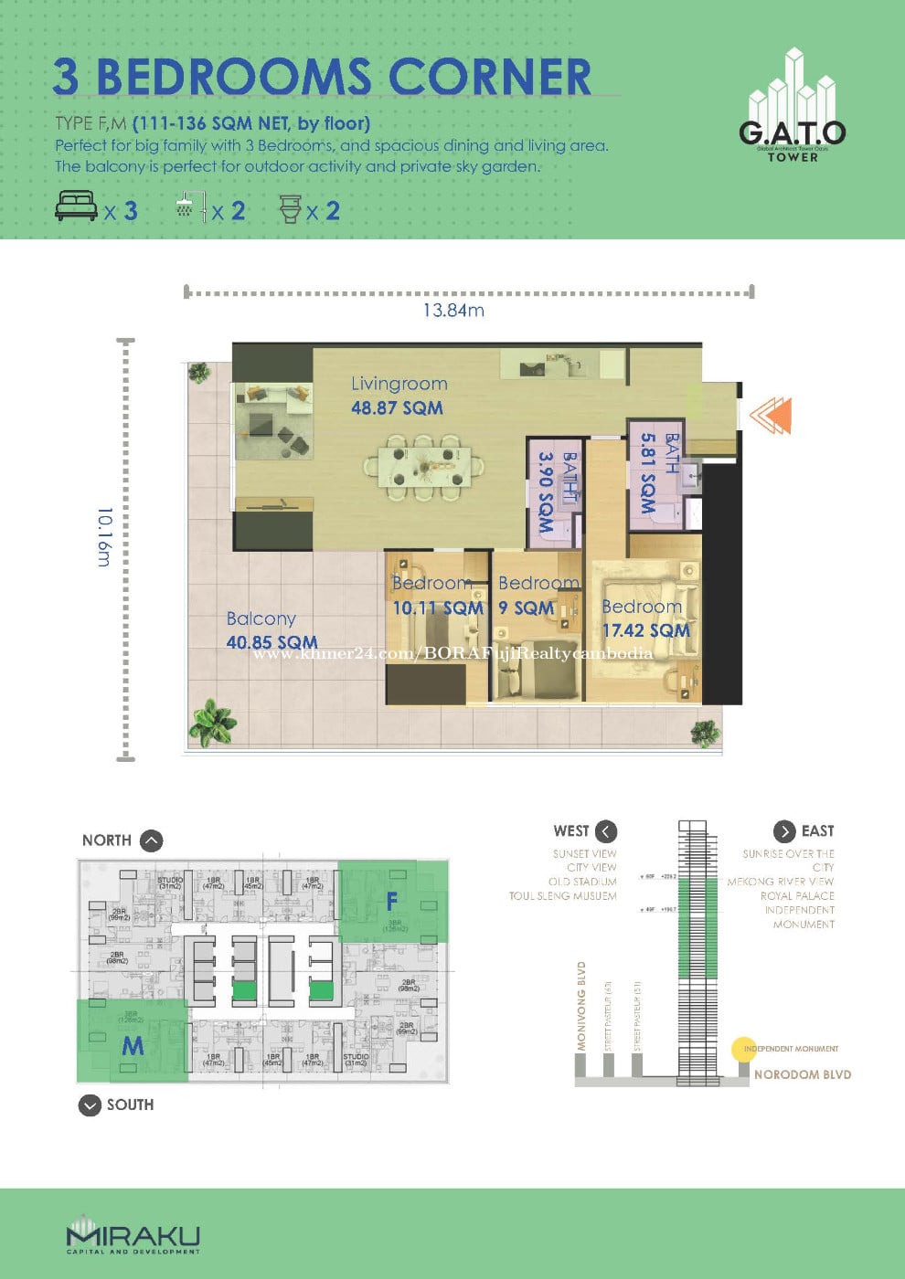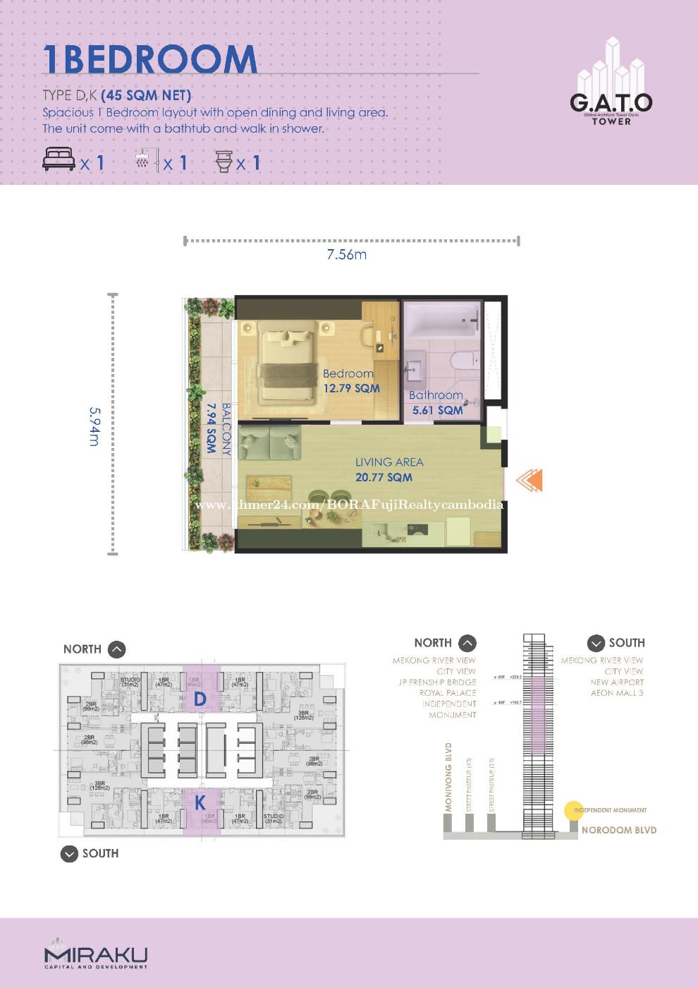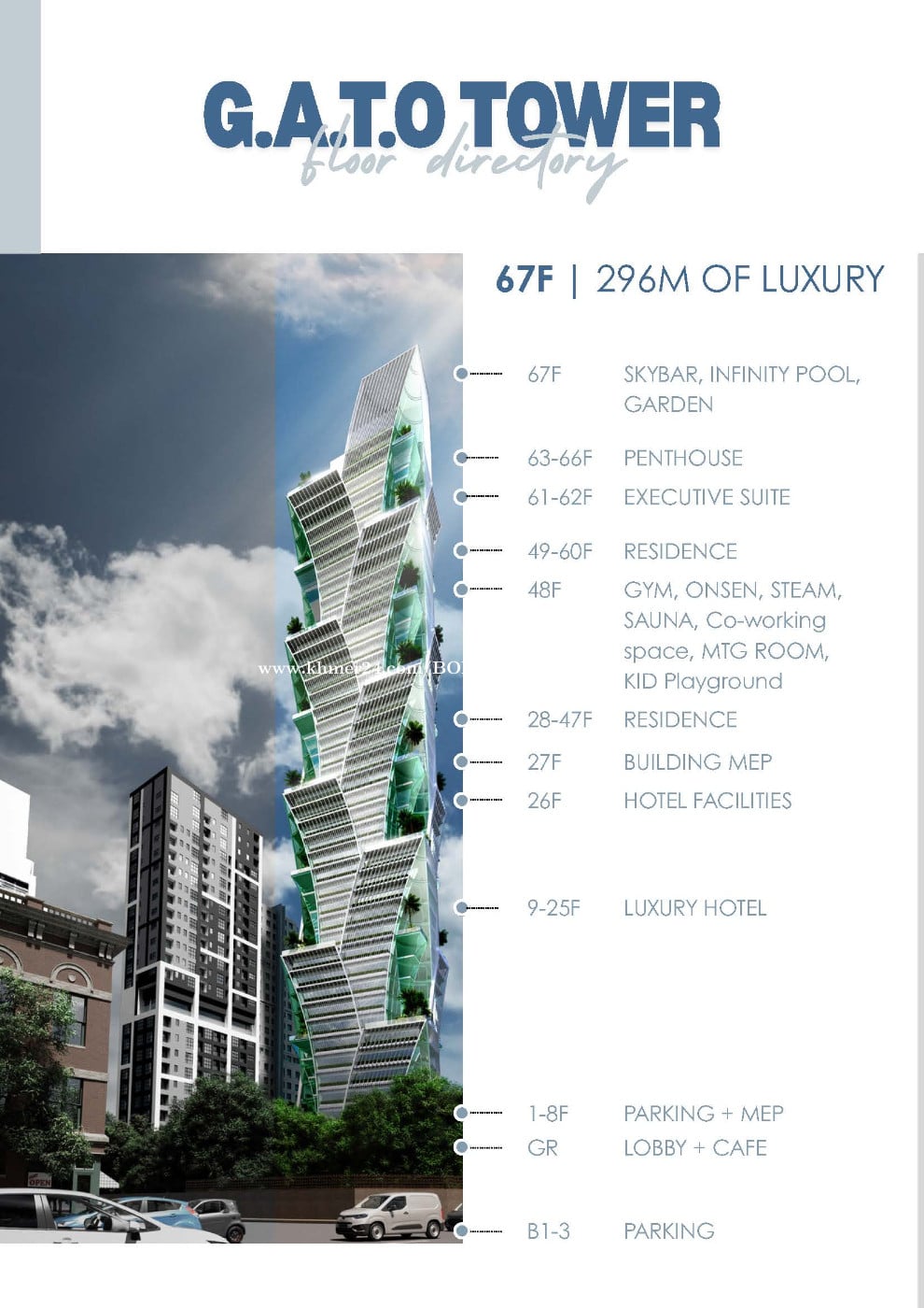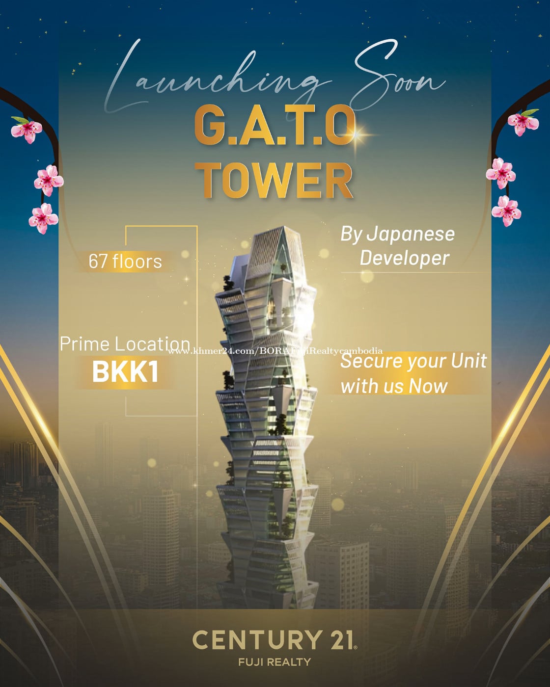 ๐ข G.A.T.O Tower โ Luxury Living in BKK1, Phnom Penh Experience Phnom Penhโs newest landmark โ G.A.T.O Tower, developed by Miraku Capital & Development Co., Ltd (Japan), known for reliability, quality, and precision. Situated in BKK1, one of Phnom Penhโs most prestigious neighborhoods with a vibrant population of locals, expats, and professionals, this 67-floor luxury tower offers: โจ Premium Residences โ Studio to 3-Bedroom units, Executive Suites, and Penthouses โจ World-Class Amenities โ Sky Infinity Pool, Sky Bar, Gym, Sauna, Co-Working, and Kidโs Playground โจ Ideal for Living & Investment โ Perfect for short-term or long-term rental ๐ณ Flexible Payment Options โ Pre-book with $500 | 48-Month Installments, No Interest ๐ฉ Secure your unit today and be part of BKK1โs most trusted Japanese-developed luxury landmark! โโโโโโ ่ฉณ็ดฐๆ ๅ ฑใฏใๆฐ่ปฝใซใๅใๅใใใใ ใใใ ๐๐จ๐ซ๐ ๐ข๐ง๐๐จ ๐ฉ๐ฅ๐๐๐ฌ๐: ๆฅๆฌ่ชๅฏพๅฟๅฏ่ฝ ๐Tel: 099666xxxClick To Call ๐ฑDirect: https://t.me/bora_century21 ๐Join: https://t.me/resalecondo