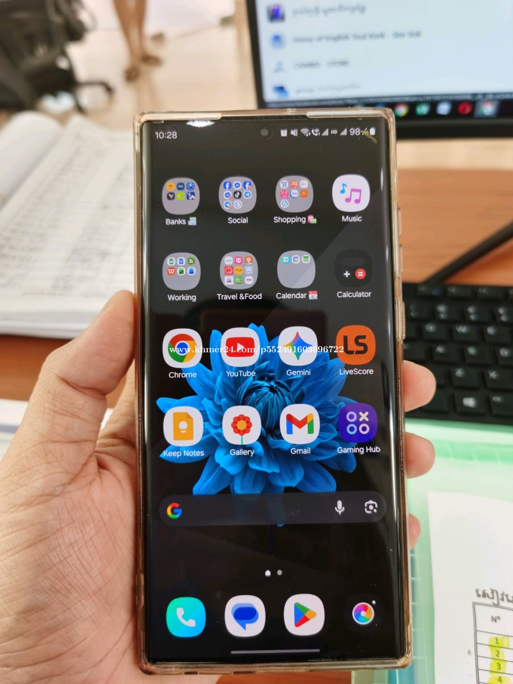 Galaxy s22 ultra Ram 8/ 128g ជាំក្បែរកាំមេរ៉ា នឹងខាងស្តាំដូចរូប sim 1+Esim ដំណើរការល្អគ្រប់យ៉ាង 0965555xxxClick To Call(តេឡេក្រាម) ជិតកាំកូរ មានតែទូរស័ព្ទ