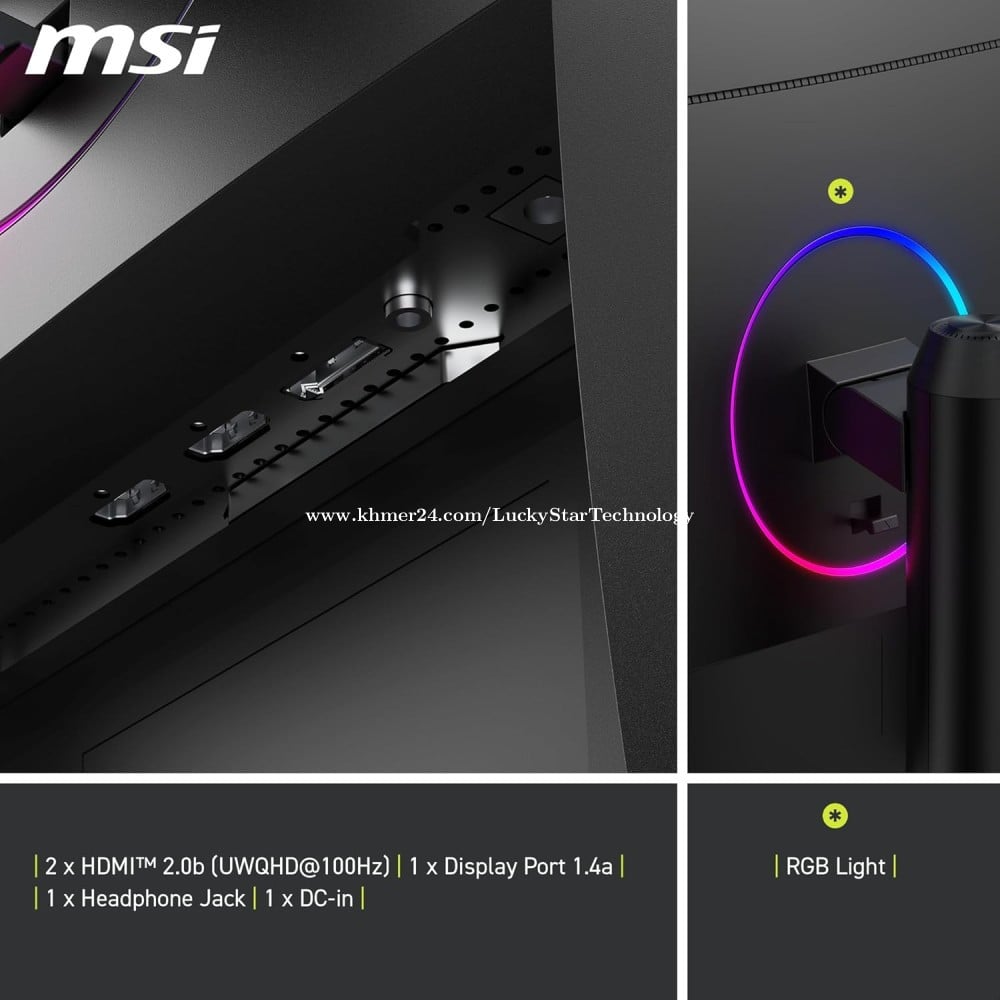 -Panel Type : VA -Curvature: Curve 1500R -Resolution : UHD 3K (3440 x 1440) -Aspect Ratio: 21:9 -Brightness (nits) : 300 (Typ.) -Contrast Ratio : 3000:1 (Typ.) -Response Time :1ms (MPRT) -Refresh Rate (max) : 180Hz -Ports: 1 x DisplayPort 1.4a, 2 x HDMI 2.0 (UWQHD@100Hz), 1x Headphone-out -Power Type: External Adapter 19V 3.42A -Adjustment (Tilt): 5 ~20 (degree) -Adjustment (Swivel) : +/-30 degree -Adjustment (Pivot: +/-5 degree -Adjustment (Height): 0 ~ 90mm -DIMENSION (W X D X H): 808.60 x 269.97 x 513.97 (mm) -Weight: 6.95Kg