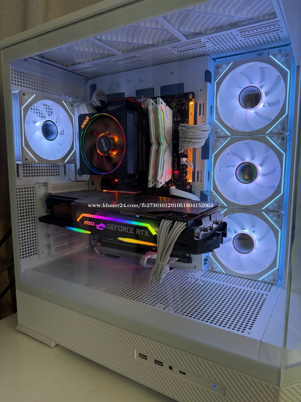 • MOTHERBOARD: X470 AROUS GAMING 7 WIFI • CPU: AMD RYZEN 7 3700X 8 CORE 3600MHZ, 8 CORES • GPU: MSI GAMING GEFORECE RTX 2070 SUPER GAMING X TRIO 8GB • RAM: TEAM T-FORCE NIGHT HAWK RGB 16GB (2 X 8GB) DDR4 3200 • M.2 SSD: ADATA SX7000NP 256GB • SSD: MUSHKIN REACTOR 1TB INTERNAL 2.5" • PSU: CORSAIR RM750X WHITE • CASE: JONSBO D400 WHITE (4 WHITE FANS) • MONITOR: 27" XG GAMING MONITOR - XG270HU 1440P 144HZ ADDITIONAL: • KEYBOARD: CORSAIR K70 RGB MK.2 SE MECHANICAL GAMING KEYBOARD WHITE (If new $159) • MOUSE: GLORIOUS MODEL O WIRELESS GAMING MOUSE (MATTE WHITE) (If new $69)
