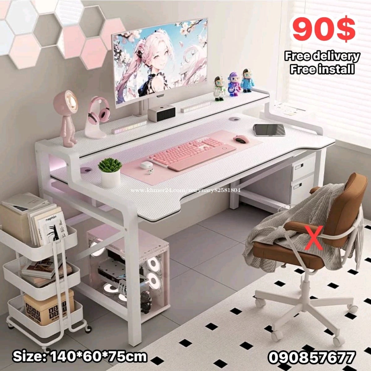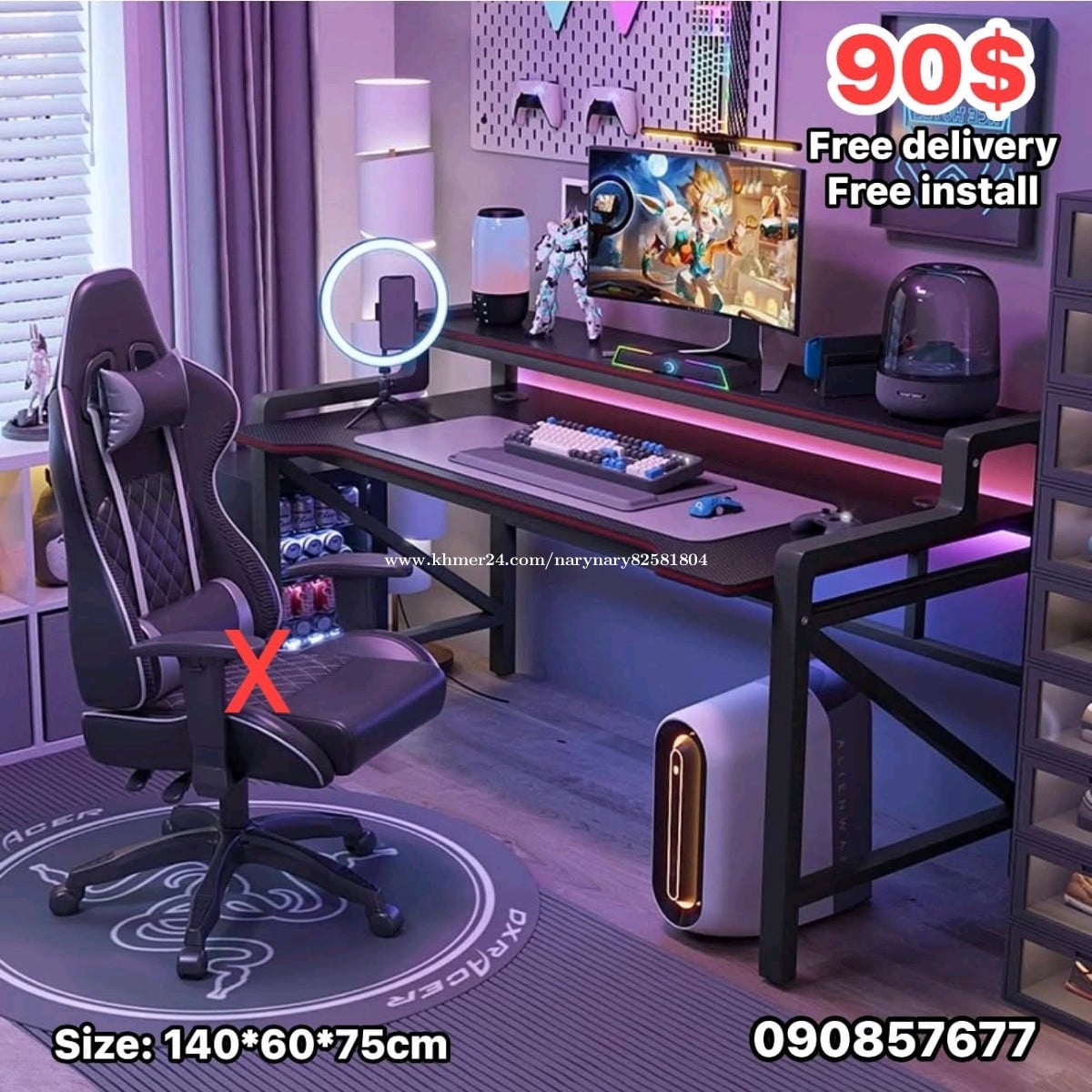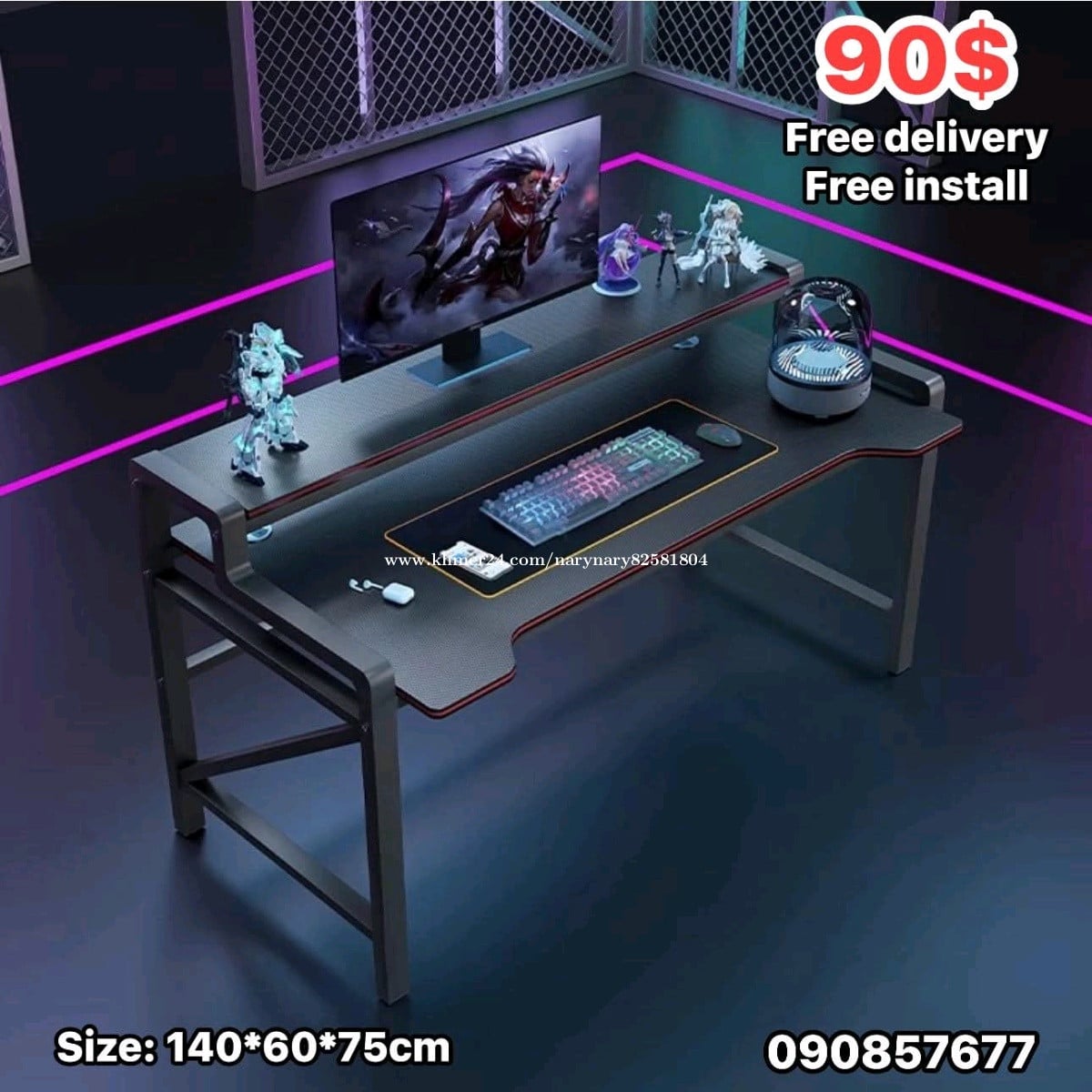 តុ gaming ម៉ូតថ្មី មកដល់ថ្មីៗ Size 140*60*75cm Price : 90$ Free delivery Free install in Phnom Penh Telegram 093914xxxClick To Call