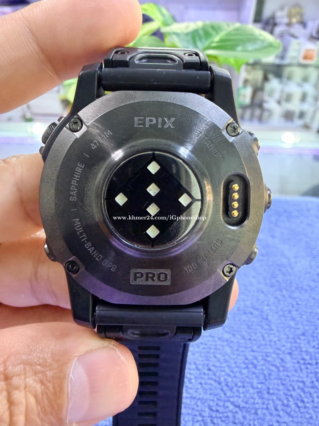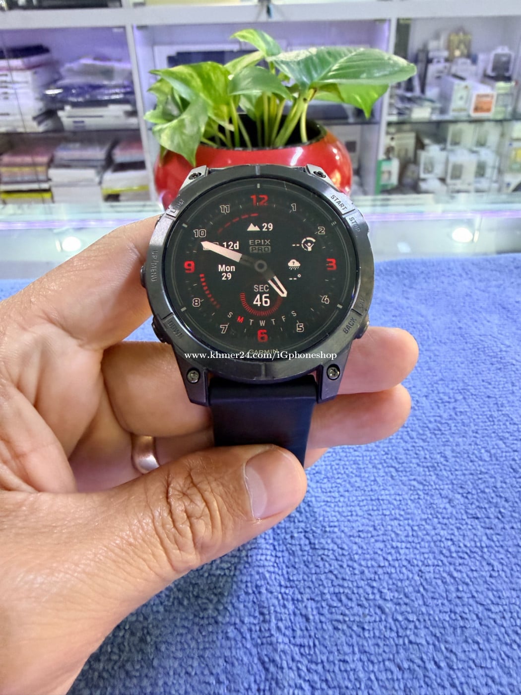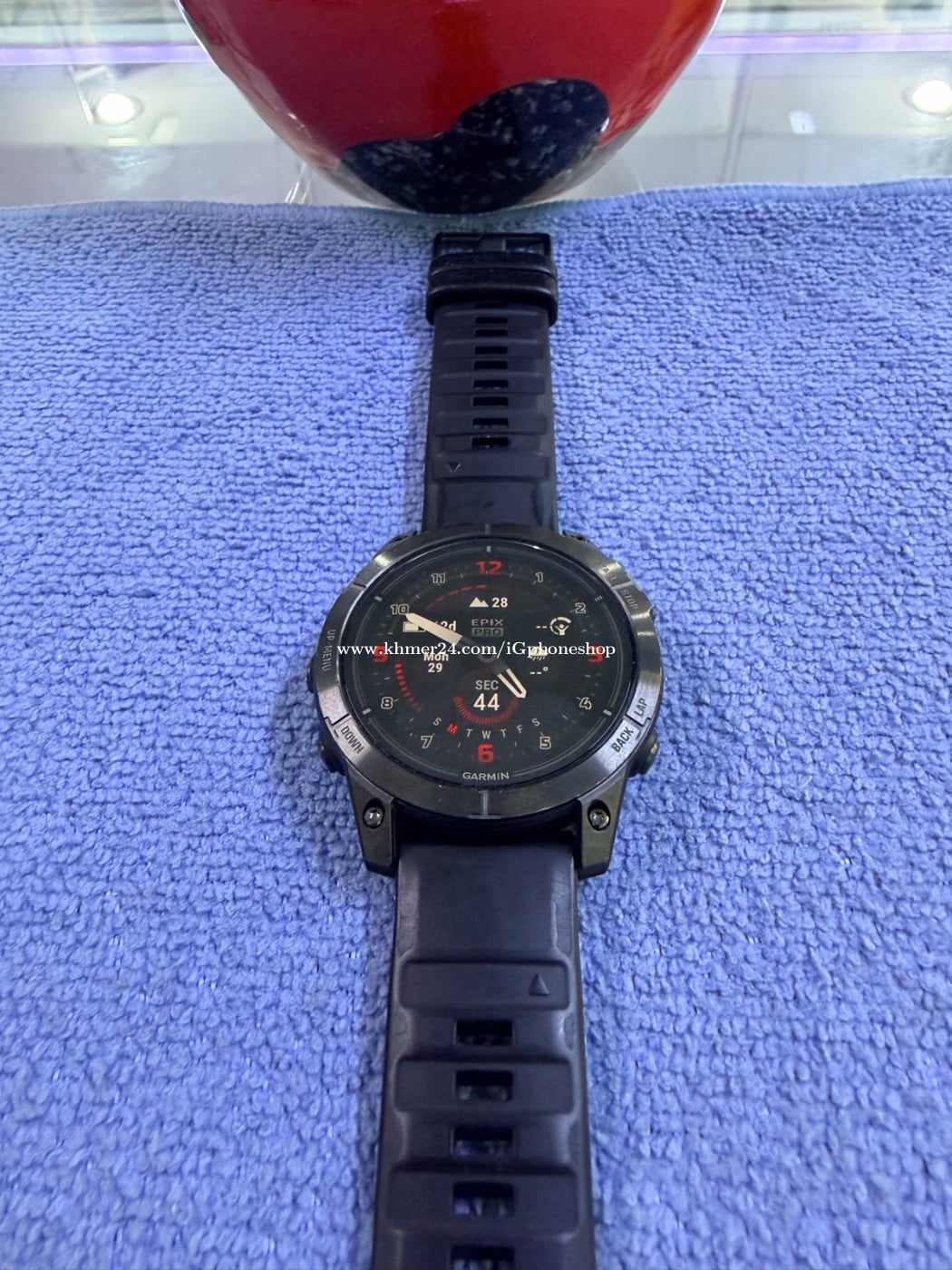 Garmin Epix Pro Gen2 Sapphire Premium Multisport GPS Watch Size: 47mm touch screen Condition: Good used(សឹកតួតិចតួចតែនៅសំនុំហ្សីន ថ្មី) ល្មមពាក់ហាត់ប្រាណ ដើរព្រៃ ឡើងភ្នំ មានផែនទី emergency contact Original Charger Price: 495$. មានបង់រំលោះ និង ឆូតកាត Aeon Call: 017565xxxClick To Call. 087770xxxClick To Call. https://t.me/iGphoneshop