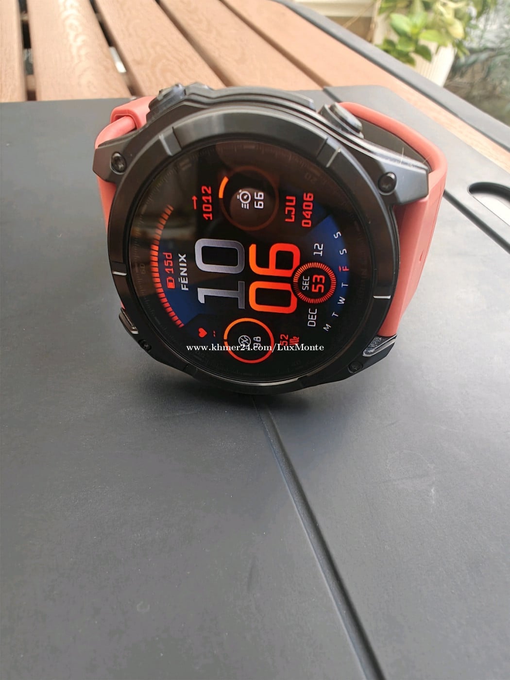 97% New with Red Flame Strap & black strap Display: 1.4-inch AMOLED, always-on option, 454x454 resolution, Sapphire lens. Materials: Titanium Bezel, Sapphire Lens, fiber-reinforced polymer case. Size: 51 x 51 x 15.4 mm, fits larger wrists. Weight: Around 64g (case only, titanium). Battery Life: Up to 13 days (smartwatch), 84 hours (GPS), 68 hours (All-Systems GPS). Water Rating: 10 ATM (Dive-rated to 40m). Storage: 32GB. Key Features: Display Technology: Bright AMOLED with Power Sapphire™ for solar charging (if solar model). Audio: Built-in speaker & microphone for calls/voice assistant. Navigation: Multiband GPS, TopoActive maps, round-trip routing, ClimbPro, golf/ski maps. Health & Performance: ECG app, Readiness Score, VO2 Max, Training Status, Heart Rate. Connectivity: Bluetooth, ANT+, Wi-Fi, Garmin Pay, Garmin Messenger App. Tools: Built-in LED flashlight, NFC, Garmin Connect app integration.