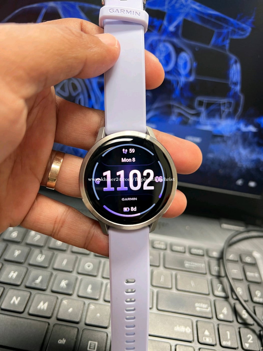 នាឡិកាតាមដានសុខភាព រូបរាងបែបស្ត្រី ឬនារីៗតាមដានសុខភាពរាង្គកាយប្រចាំថ្ងៃ, ដឹងកាលវេលានៃវដ្តរដូវរបស់ស្ត្រី ច្បាស់ៗ, កីឡាចម្រុះ វាស់ស្ត្រេស វាស់ចង្វាក់បេះដូង, វាស់ចង្វាក់ដង្ហើម, វាស់កាល់ឡូរី, មុខងារ record សម្លេង , ខល សន្ទនាគ្នាតាមទូរស័ព្ទបាន, មានពិលនៃការរត់លេងកីឡា...មុខងារវាស់ដំណេកគេង និងមុខងារជាច្រើនទៀត ម៉ាកយីហោអាមេរិច original, Garmin Brand , បន្តធានាជូន២ឆ្នាំ បង្រៀនប្រើប្រាស់ និងភ្ជាប់ជាមួយទូរស័ព្ទបាន នៃកត់ត្រាទិន្នន័យប្រចាំថ្ងៃ ខែ និងប្រចាំឆ្នាំ។