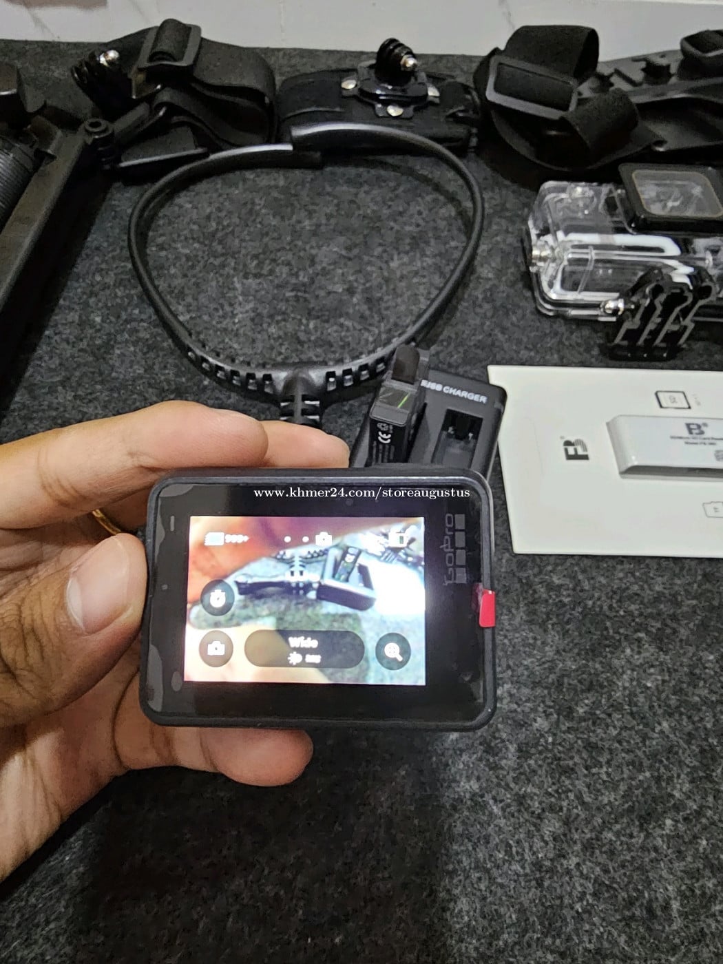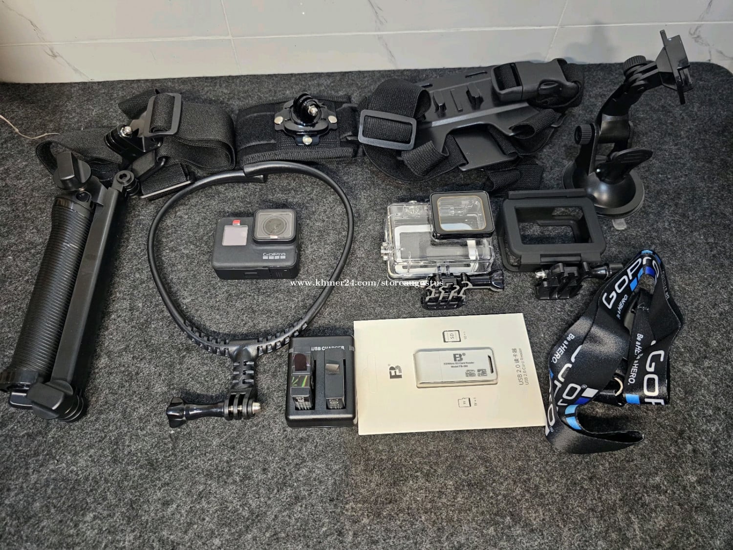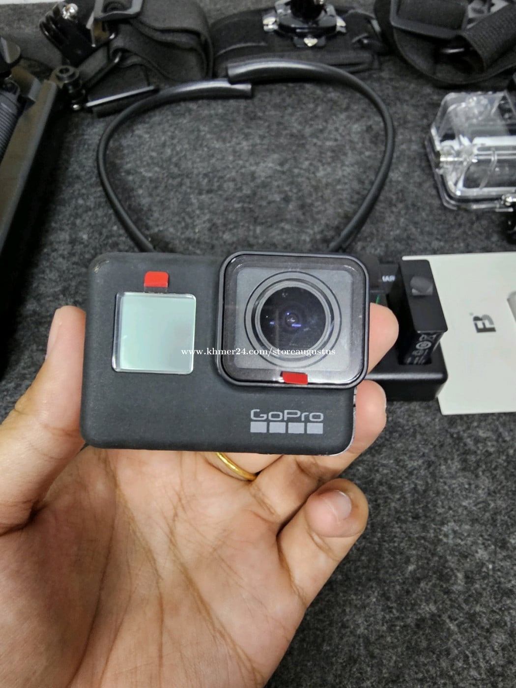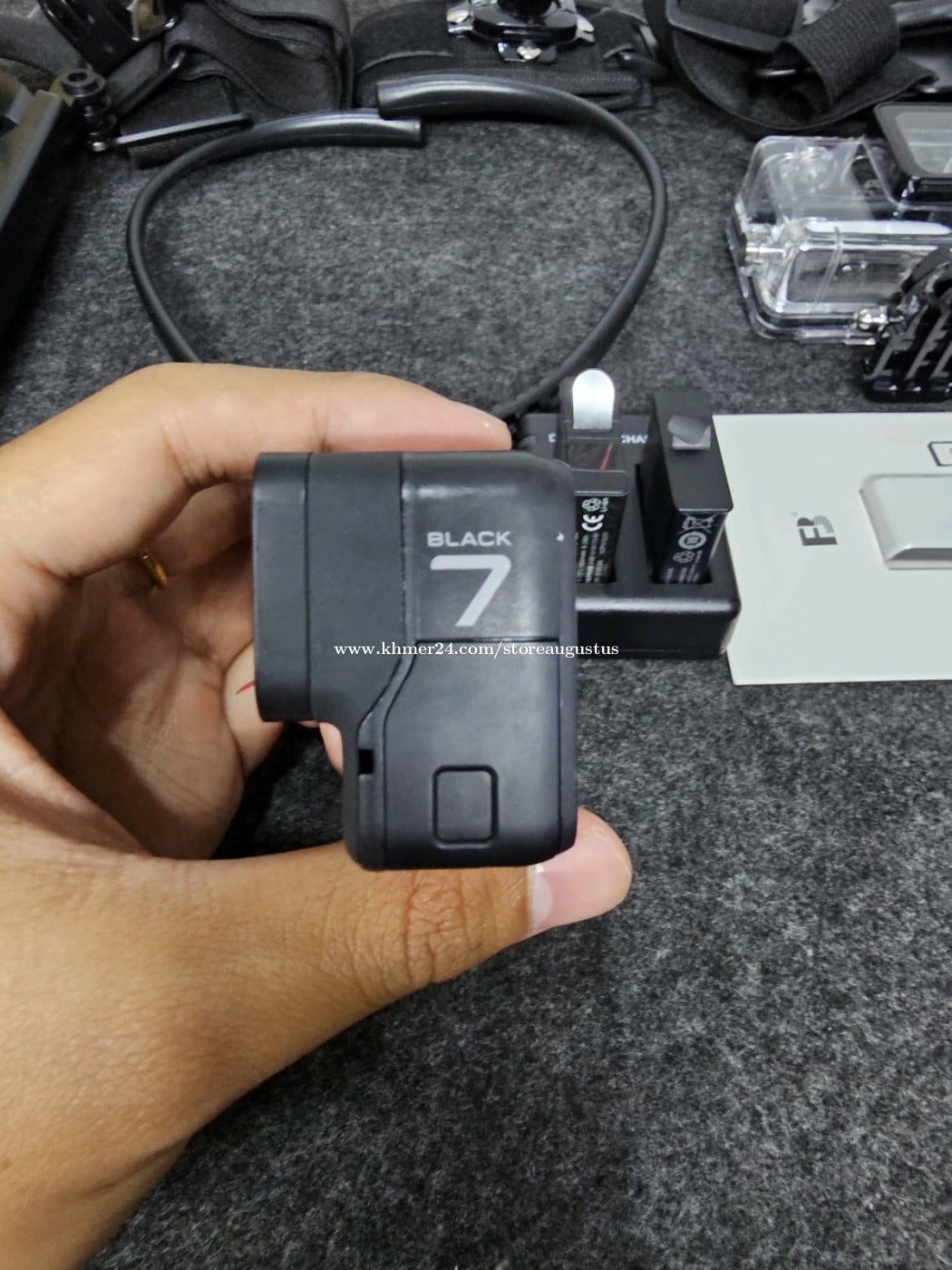 GoPro hero 7 black មួយទឹក 98% ថែមជូន accessories មួយset ធានា១ខែលេីម៉ាសុីន _ថ្ម២គ្រាប់ _Memory 64g