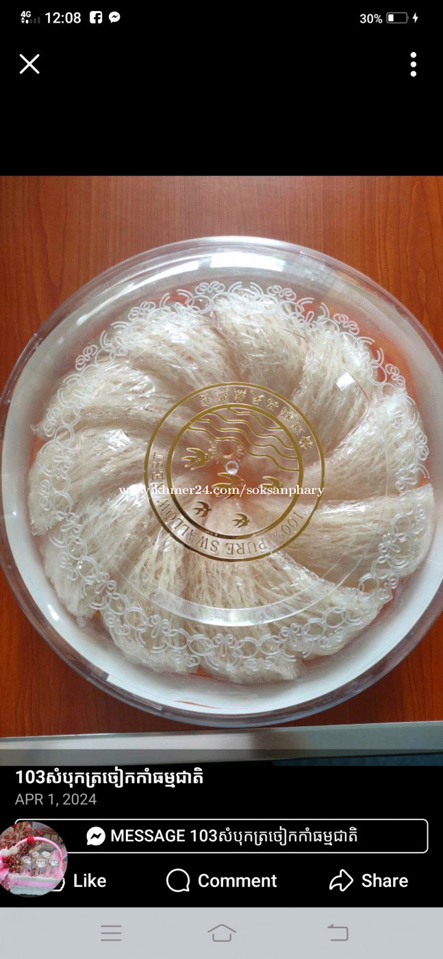 មានលក់សំបុកត្រចៀកកាំ ធម្មជាតិ ធានាថាស្អាត នឹងមានគុណភាព ថែម ស្ករក្រាម និង ពុទ្រា..... 0976372xxxClick To Call. Telegram..@Hour136