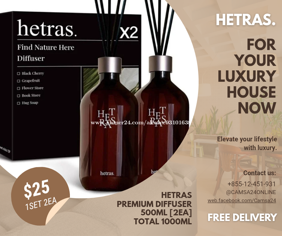 ๐ฐ๐ท No.1 Korean Diffuser HETRAS โ Now in Cambodia! โจ Upgrade your room to a 5-star hotel vibe with HETRAS. โ Why HETRAS? Huge 500ml Size (Lasts for months!) Premium Scent (Directly from Korea) Luxury Design (Perfect for home & office) ๐ฟ Our Signature Scents: 1๏ธโฃ Hug Soap ๐งผ โ Cozy and clean, like freshly washed laundry. 2๏ธโฃ La Tulipe ๐ท โ Elegant and fresh floral scent of blooming tulips. 3๏ธโฃ White Shirt ๐ โ Crisp, sharp, and sophisticated clean mood. ๐ต Fast Delivery in Phnom Penh | ๐ต ABA & QR COD OK! ๐ Order Now: . . #HetrasCambodia #KoreanDiffuser #HomeFragrance #PhnomPenhLife #InteriorDesign #PremiumScent #KoreanBrand #PhnomPenhShopping #CambodiaOnlineShop #MadeInKorea #Hetras #HugSoap #LaTulipe #WhiteShirt
