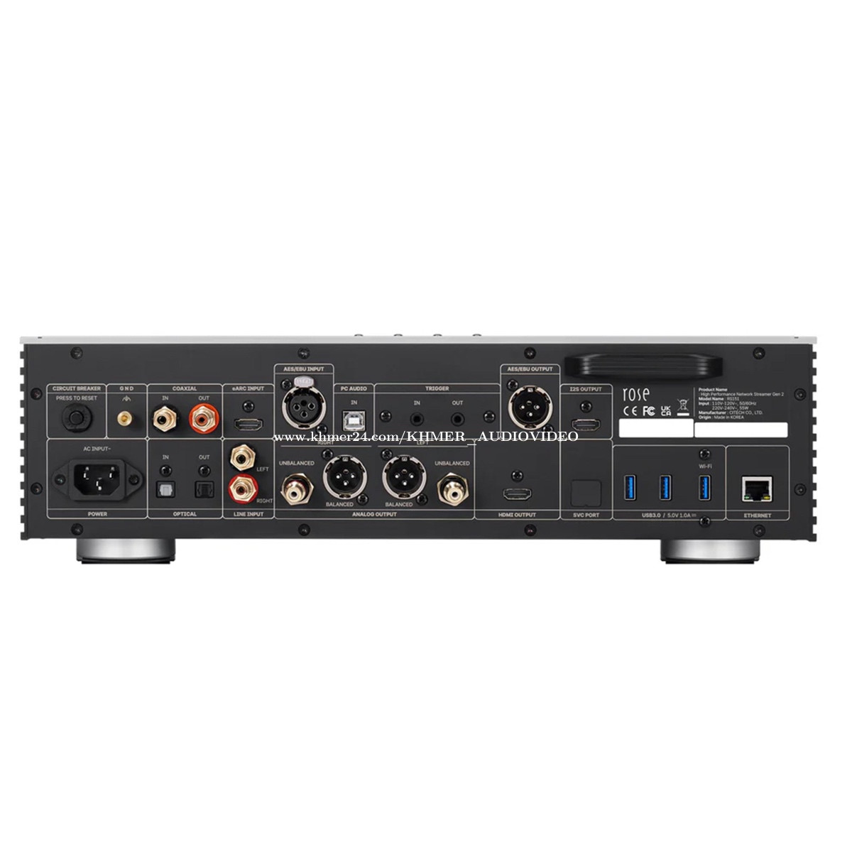 แแแถแ : HiFi Rose แแแผแแแ : RS151 แแแแแแ : แแแแถแแ แถแแ แ แแแแแ DAC Chip ES9038PRO (x2) Audio Output Optical x 1, Coax x 1, Pre-OUT (Balanced XLR x 1, Unbalanced RCA x 1), I2S-HDMI x 1, AES/EBU x 1 Display 10.1" TFT LCD Capacitive Touch (IPS, 1600ร1200) Connectivity Ethernet 1000 BASE-T (RJ45), Wi-Fi: USB Dongle, Bluetooth: 4.1 aptX CPU Octa-core RK3399 GPU ARM Mali-T860 MP4 (OpenGL, Vulkan, OpenCL) Streaming RoonReady, AirPlay, DLNA/UPnP, Squeezelite Music Service Qobuz, TIDAL, AppleMusic, Bugs, Rose Tube, Rose Podcast, Internet Radio Audio Codec WAV, FLAC, ALAC, AIFF, WMA, OGG, APE, MP1, MP2, MP3 AAC, M4A, AMR, DSF, DFF, SACD-ISO Video Codec AVI, ASF, MP4, MKV, MOV, WMV H.264/AVC (Baseline/Main/High Profile, Level 5.1; up to 4096x2304@60fps) H.265/HEVC (Main/Main10, Level 5.1 High-tier; up to 4096x2304@60fps) VP8/VP9 (L4.0/L5.1, up to 4096x2304@60fps) H.264/AVC/VP8/VP9 Encoding: Up to 1080p@30fps Video Output HDMI 2.0 (4K UHD @ 60Hz) Weight 7.1Kg
