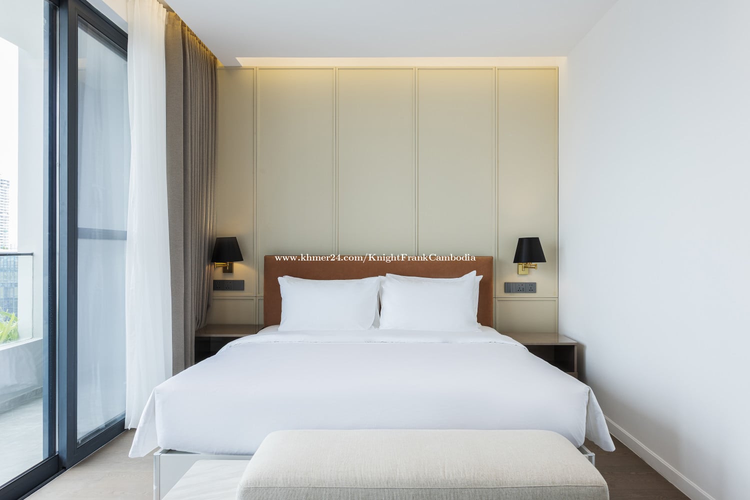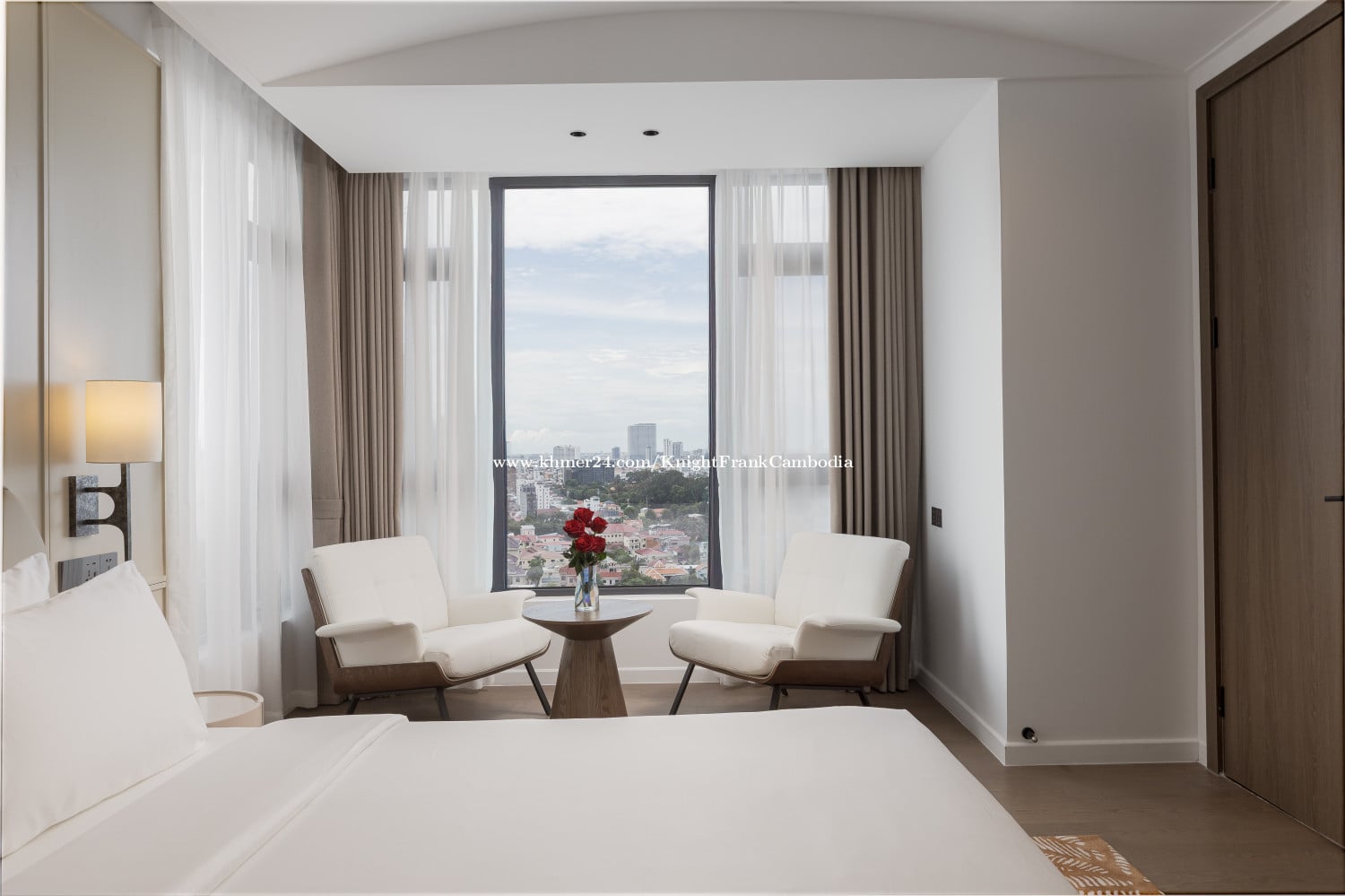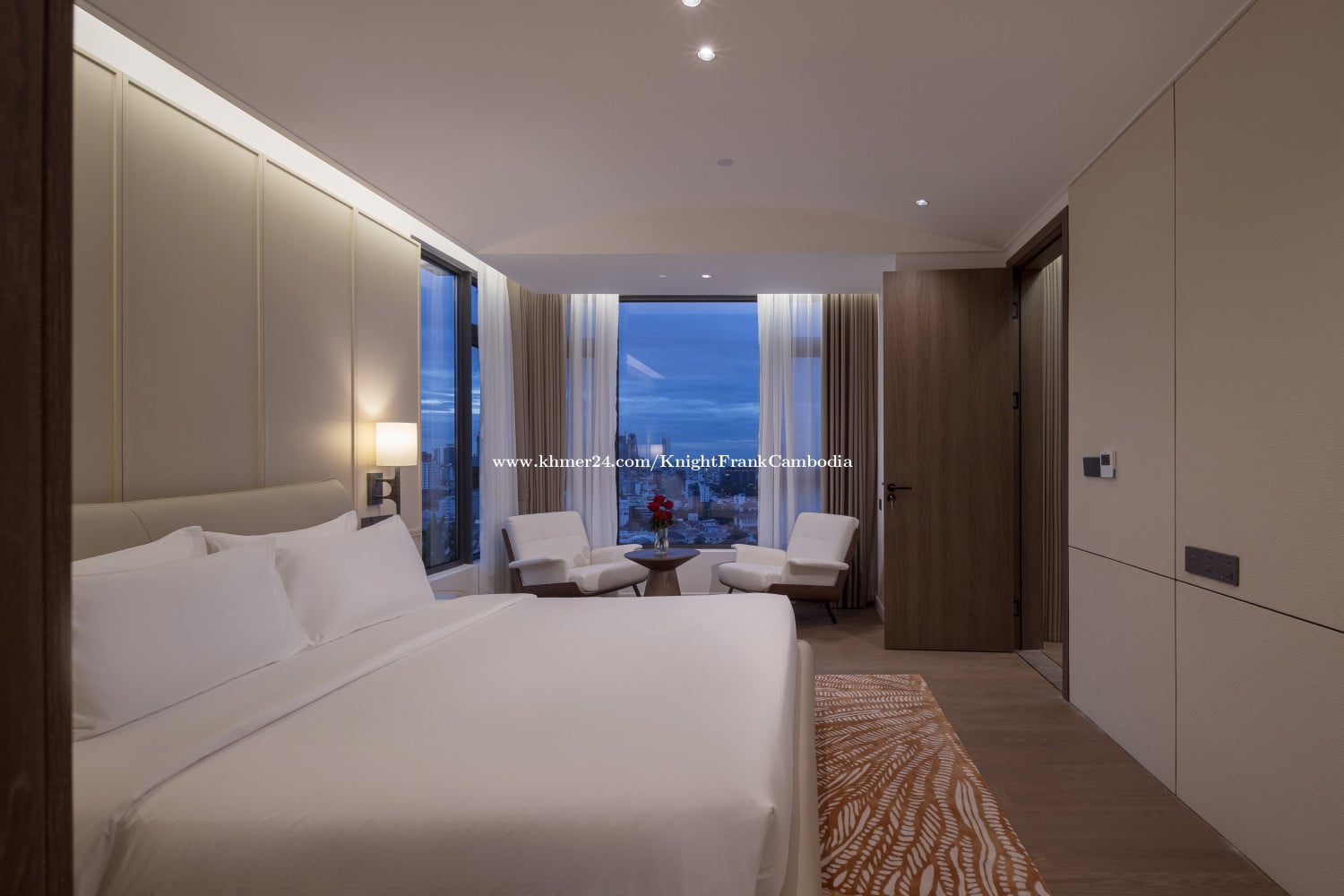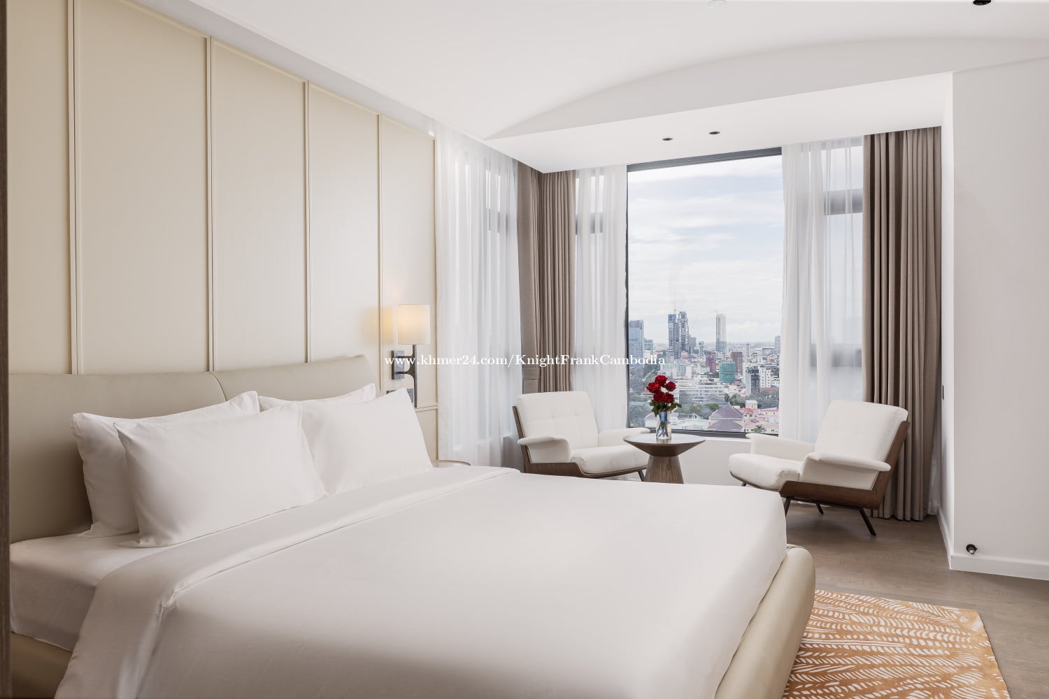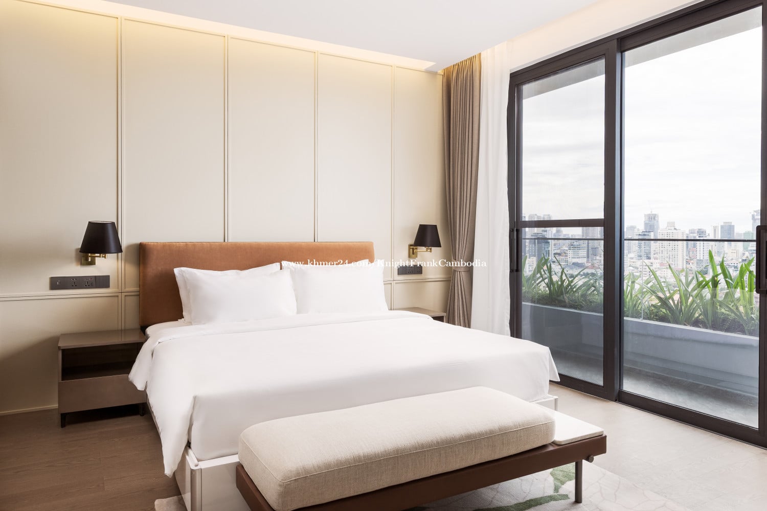 High-end Penthouse for lease Discover refined urban living in this exclusive three-bedroom penthouse located in the heart of Bassac Lane, Tonle Bassac, Chamkarmon. Offering a generous 220 sqm of elegantly designed living space, this home blends modern sophistication with comfort and privacy. The residence features a spacious open-plan living and dining area, complemented by a sleek contemporary kitchen with premium finishes and a striking marble island—ideal for entertaining. Floor-to-ceiling windows frame stunning city views and fill the space with natural light. A standout feature is the luxurious bathroom with a freestanding bathtub set against panoramic skyline views, creating a serene, spa-like retreat above the city. Monthly Rate Includes • Fully furnished apartment • High-speed Wi-Fi & IP TV • Housekeeping with linen change (twice weekly) • Access to rooftop swimming pool, gym & co-working space • 24/7 concierge & security • 1 motorbike parking space • Water usage Additional Charges • Electricity: USD 0.25 / kWh Bassac Lane is a lively and trendy area in Tonle Bassac, Chamkarmon, known for its stylish cafés, restaurants, and cocktail bars. Popular with expats and professionals, it offers a vibrant lifestyle while remaining convenient and walkable. Located just minutes from BKK1, AEON Mall, and the city’s key districts, Bassac Lane is ideal for modern urban living.