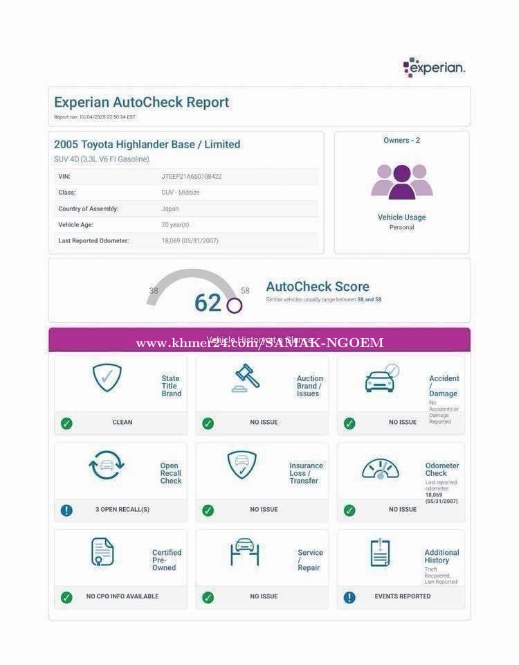 ✅របស់កំរ៉ ម្ចាស់ដើមទីមួយថ្មីណាស់ស្រុីន1ជុំ ✅Highlander 05Limited P2 Foll 3ជរ ✅កៅឥចុចសង្ខាងបើកតំបូលពូកស្បែកថ្មីណាស់ ✅ធានាអត់បុកអត់កាត់ត អត់ប្តូរពណ៌ អត់ច្រេះ ✅ក្នុងក្រៅថ្មីបាតខ្ចីកង់ថ្មីៗ ✅DVD 📀 កាំម៉េរ៉ាក្រោយ ប្រភេទឡានថ្មី ✅ប្រអប់លេខអេម ជើងក្រោមហាប់រត់ស្រួលអេម ✅ទើបដូរប្រេងម៉ាសុីនប្រេងប្រអប់លេខហើយ ✅យកទៅប្រើតែម្តងថ្មីណាស់លក់ប្រញាប់លុយ ✅មហាថ្មីលក់ 18550$ ☎️012352xxxClick To CallTelegram ☎️015352xxxClick To CallTelegram ☎️067352xxxClick To Call