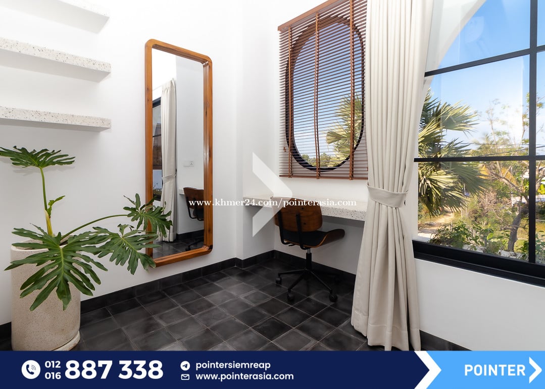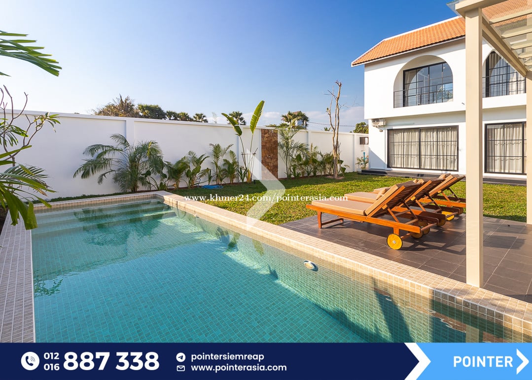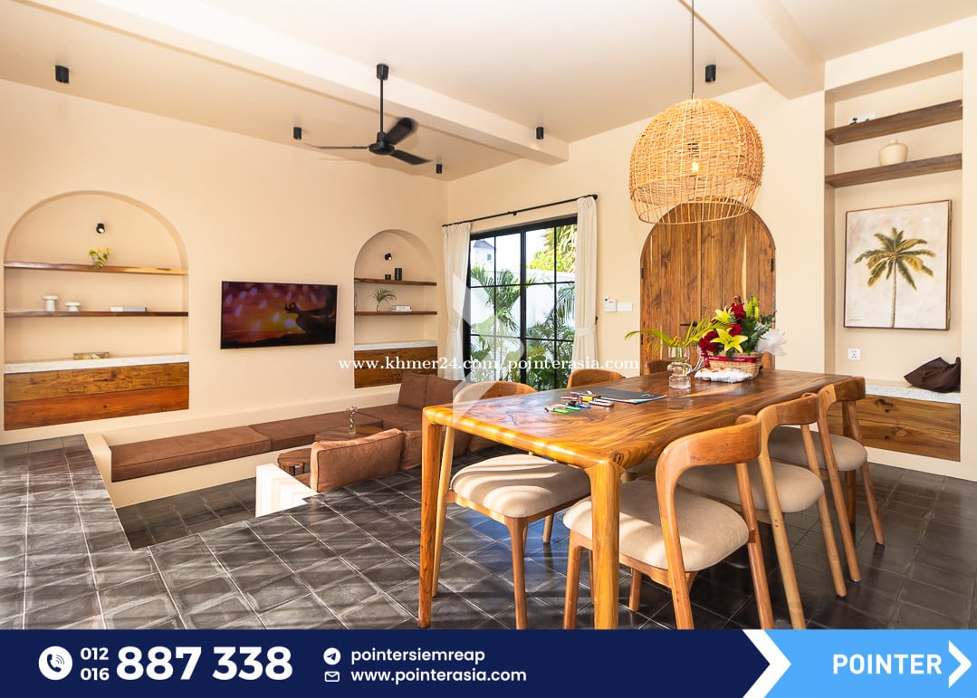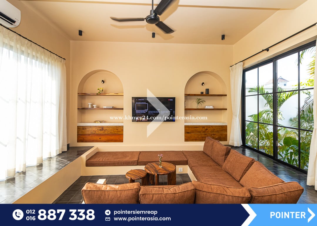 Private Villa with pool ๐Located in Svay Dankum Commune - Siem Reap City, only 10mn drive to Old Market and Pub Street area . โ Fully- Furnished (Sofa, TV, Fridge, A/C, Washing machine, Microwave, Oven, Gas cooker and wardrobe) โ Bedroom : 4 โ Bathroom : 3 โ Kitchen area with dinning table โ Living room (Pool&Garden view) โ Parking space โ Private swimming pool โ Security gate and Garden โ Pool and Garden Maintenance included ๐Property code: PR-1348 ๐นTelegram Channel : https://t.me/pointersiemreap ๐นView as webpage : https://shorturl.at/JBNZo แแแแผแขแ แแแแแแแแแแแแปแแ แทแแแแแแแแขแแแ Your Trusted Real Estate Partner