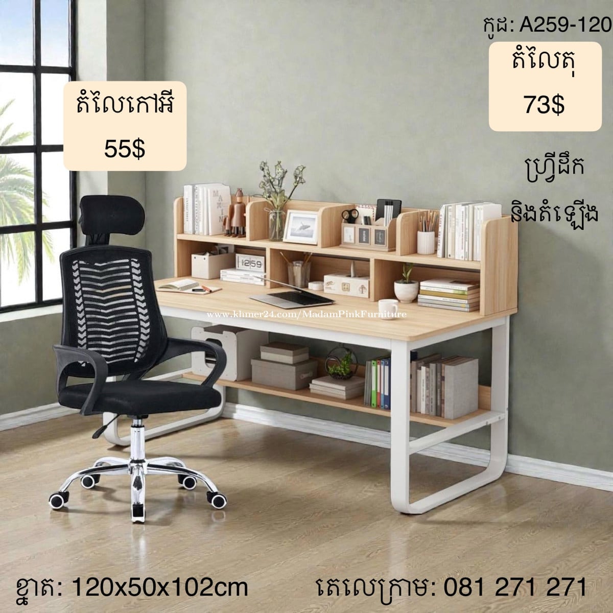 ✅តុធ្វើការ ឬតុរៀន/ Home Office table ✅តំលៃ 73$ ✅មានក្នុងស្តុកស្រាប់ កម្មង់ភ្លាម ដឹកភ្លាម 🆓ដឹកជញ្ជូនដោយឥតគិតថ្លៃ 🆓តំឡើងជូនដោយឥតគិតថ្លៃ Telegram https://t.me/Ms_lollypop ទូរសព្ទ 081271xxxClick To Call