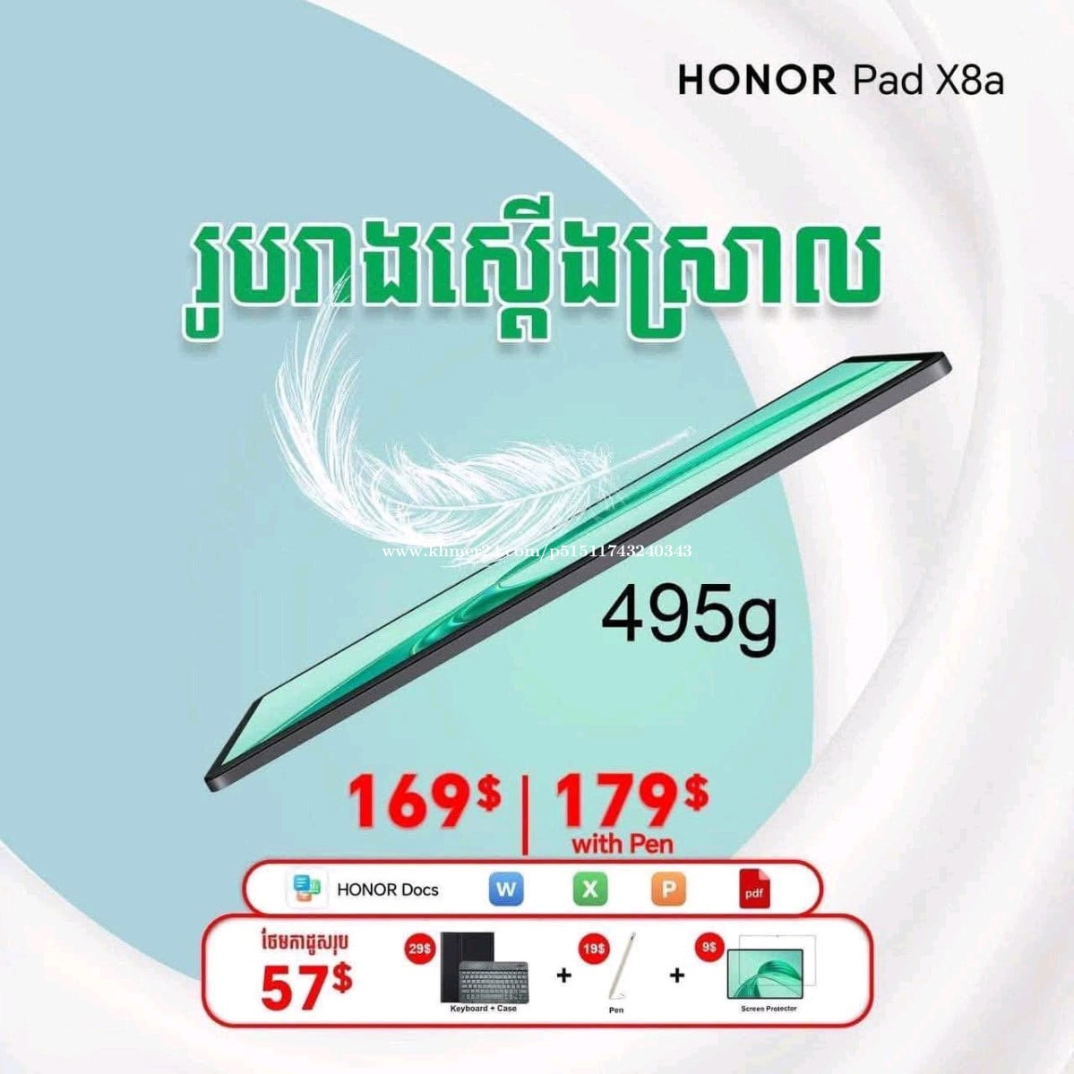 HONOR Pad X8a កម្មវិធី Word, Excel, PowerPoint, PDF, Full Version ពេញមួយជីវិតជាមួយកម្មវិធី HONOR Docs អេក្រង់ធំភ្លឺច្បាស់ 11” ល្បឿន 90Hz ថ្មកម្លាំងយក្ស 8300mAh អង្គផ្ទុកទិន្នន័យ 128GB 🔴 តម្លៃត្រឹម $169 | តម្លៃ $179 with Pen #ការថែមជូន 🎁 Screen protector តម្លៃ$9 🎁 Cover +Bluetooth keyboard តម្លៃ$29 🎁 Pen តម្លៃ$19 Telegram https://t.me/Neth99097 Link Pag Phone panda 🐼 https://www.facebook.com/share/12HM8cCGcGm/ Jionh Group ដើម្បីតាមដាន Promotion ថ្មីៗ https://t.me/phonepanda71 Free Delivery 🚚 🚚 🚚 🚚 លេខតេទំនាក់ទំនង Cellcard 011599xxxClick To Call Cellcard 077675xxxClick To Call Smart 087675xxxClick To Call