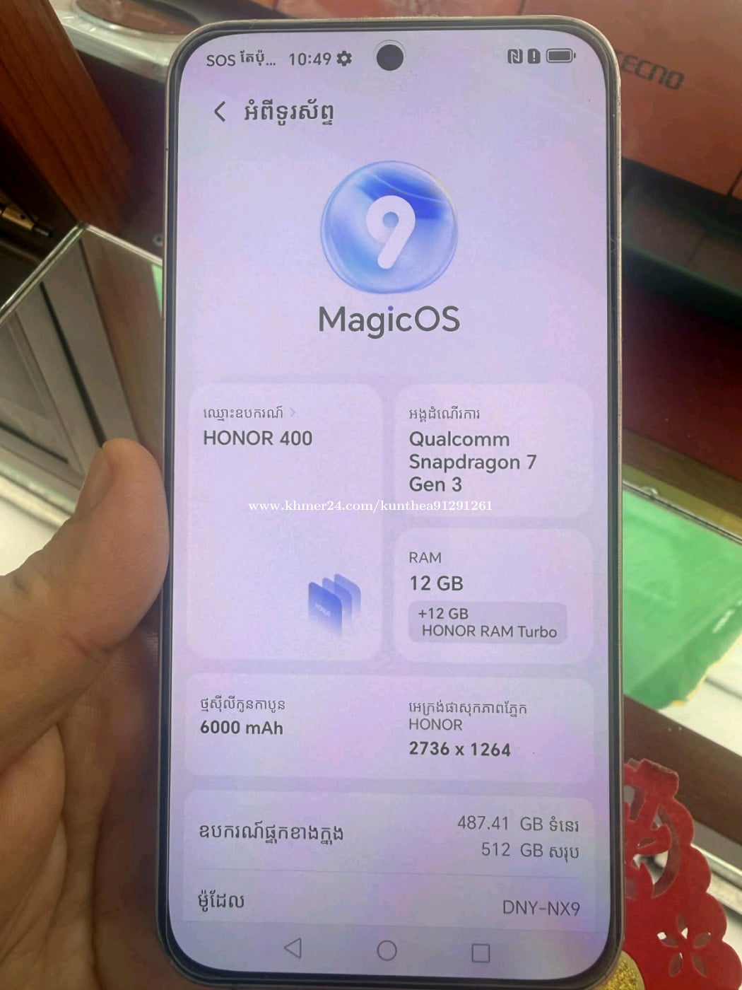 Honor 400 , 5G R12M512gb sim 2 285$ កំភ្លេ