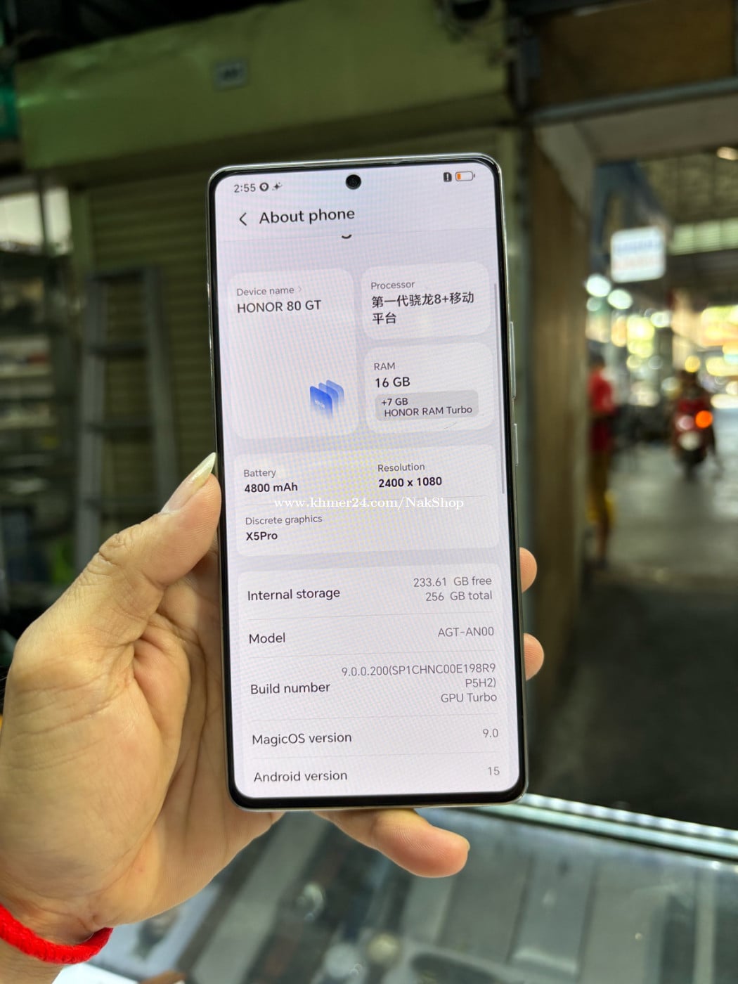 Honor 80 GT 256G Ram16G Sim2 CH ម៉ាសុីនសានុំស្រុីន