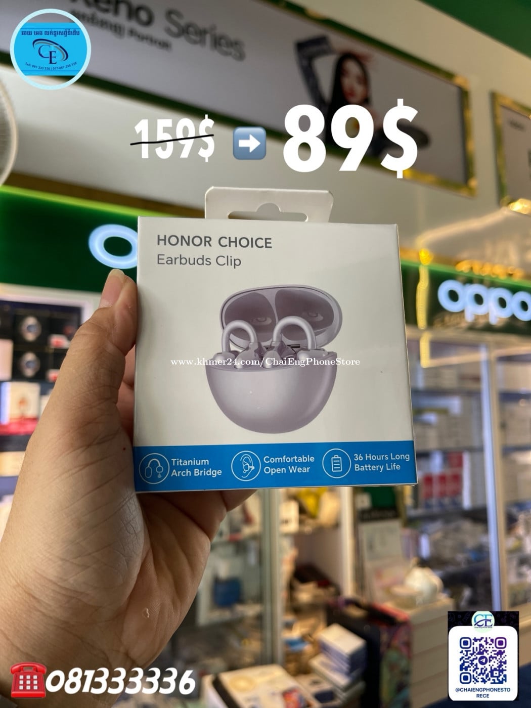 Honor Choice Earbuds Clip new seal box Price 159$ discount to 89$ 📍អាស័យដ្ឋាន ផ្ទះលេខ68BE0 ផ្លូវ215 នេរុហ៍ សង្កាត់វាលវង់ ខណ្ឌ័7មករា រាជធានីភ្នំពេញ។ នៅខាងជើងផ្សារដេប៉ូប្រហែល 500ម៉ែត្រ សំរាប់ពត៍មានលំអិតសូមទាក់ទងមកកាន់លេខខាងក្រោម: ☎️ 081 333336, 076 2333336, 017 226338, 067 226338 👉 Telegram Shop: ☎️081333xxxClick To Call តម្លៃល្អពិសេសនៅទីនេះ 📍https://goo.gl/maps/KjDyGuoDN4dMjiah9