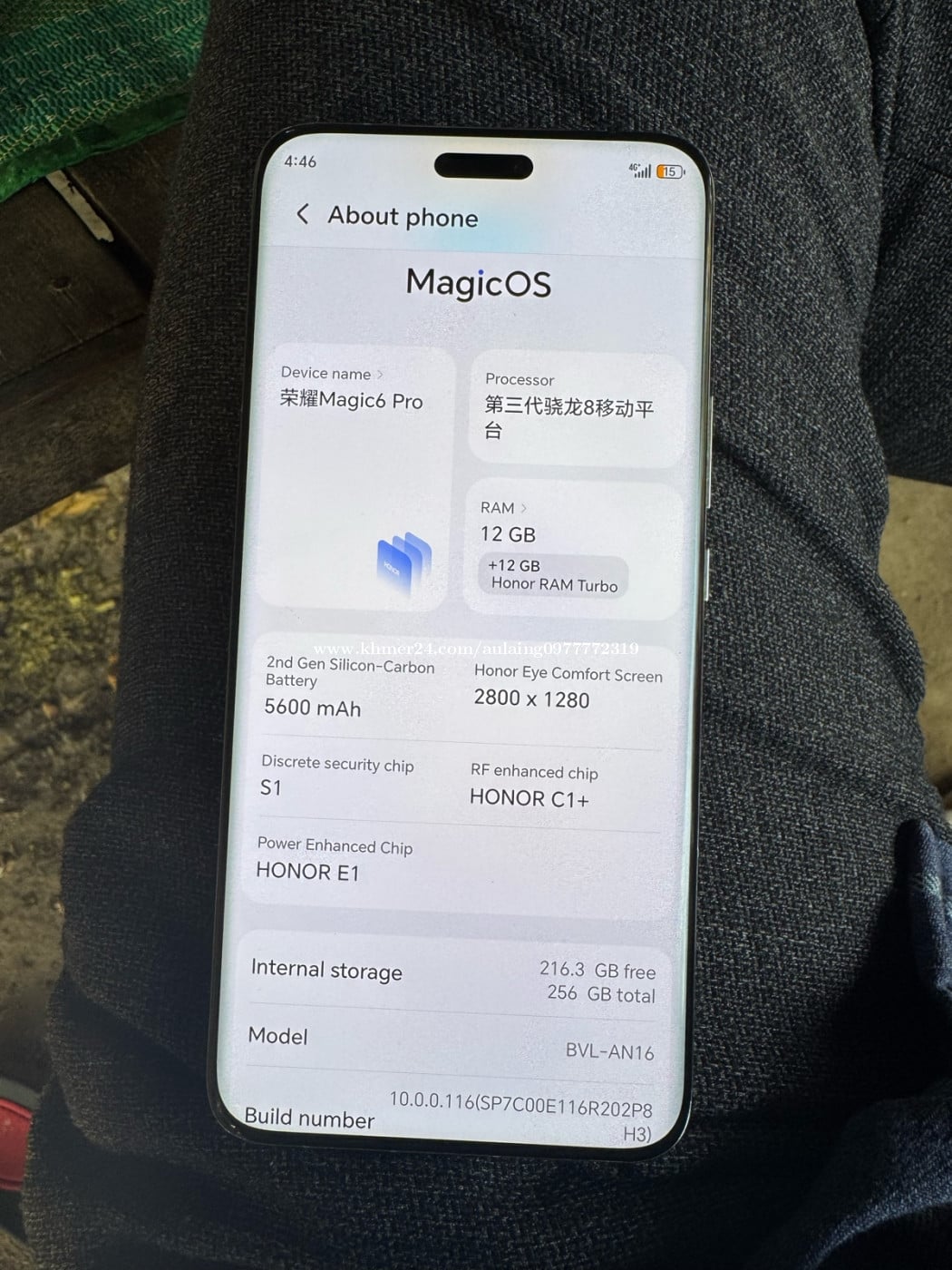 #Honor Magic 6 pro 12g/256g_CH អេក្រង់ហ្សុីន ស្កេន ថ្មកាន់ កាមេរ៉ាថតច្បាស់មុខក្រោយ សាច់ឈាមដូចរូប (ទិញដាច់វៃដូរ) #តម្លៃ $375 Free ស្រោម ☎️016419xxxClick To Call/0977772xxxClick To Call___ស្ទឹងមានជ័យ 👉https://t.me/moeungnuon (Telegram)