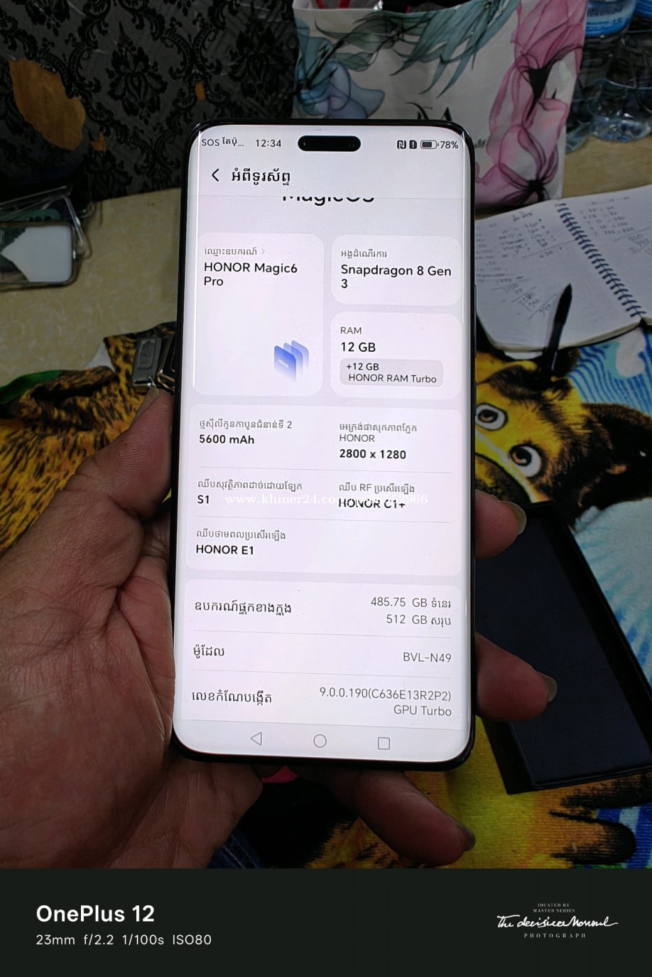 Honor Magic 6Pro12g512g98%សានុំហ្សីនទាំអសក្រុមហ៊ុន450$ តេ070448xxxClick To Call/066552xxxClick To Call