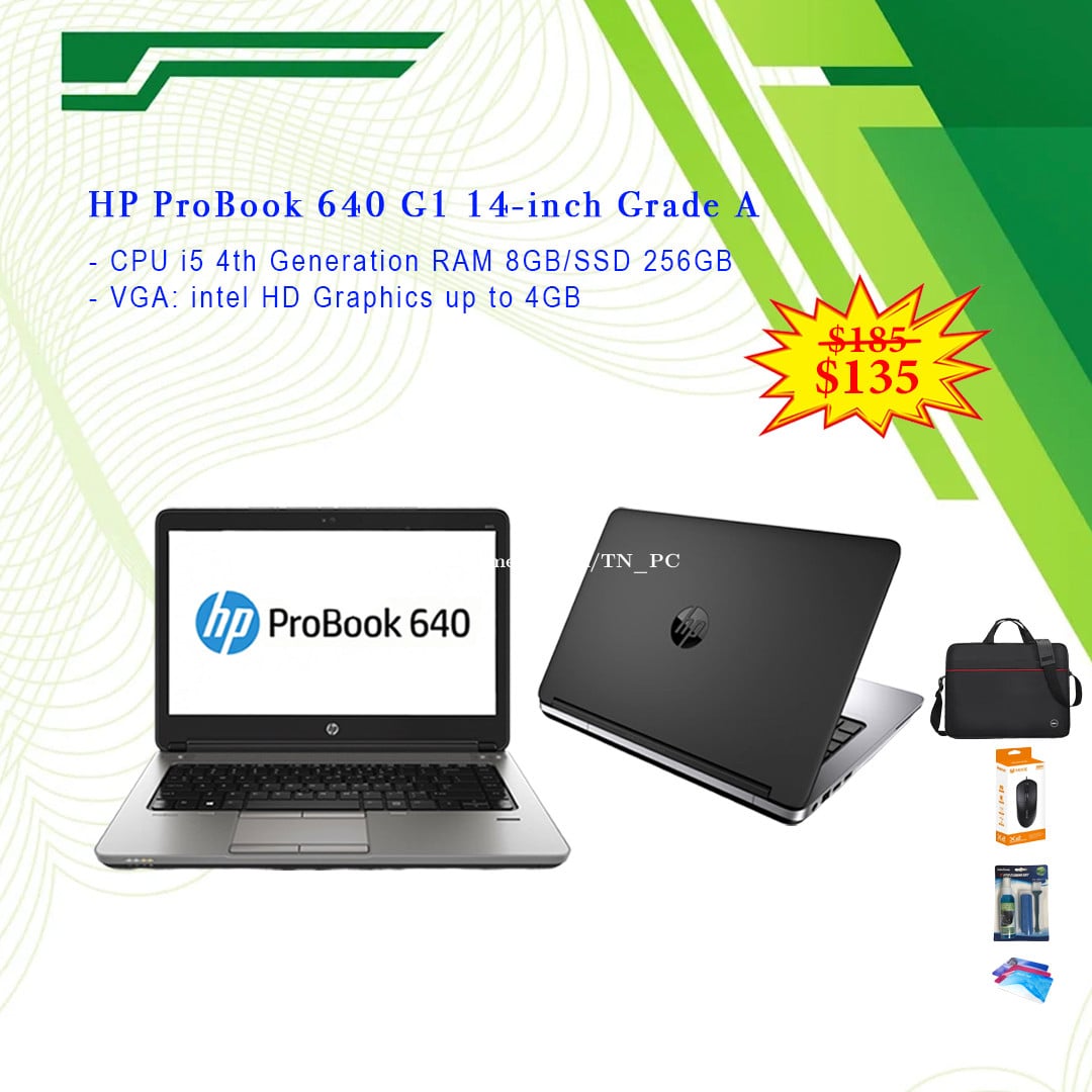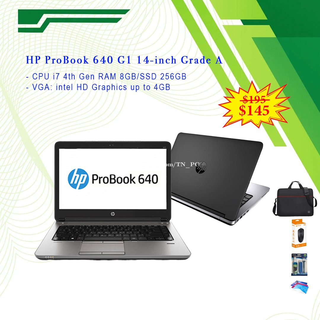 HP ProBook 640 G1 14-inch Grade A - CPU i7 4th Gen RAM 8GB/SSD 256GB - VGA: intel HD Graphics up to 4GB