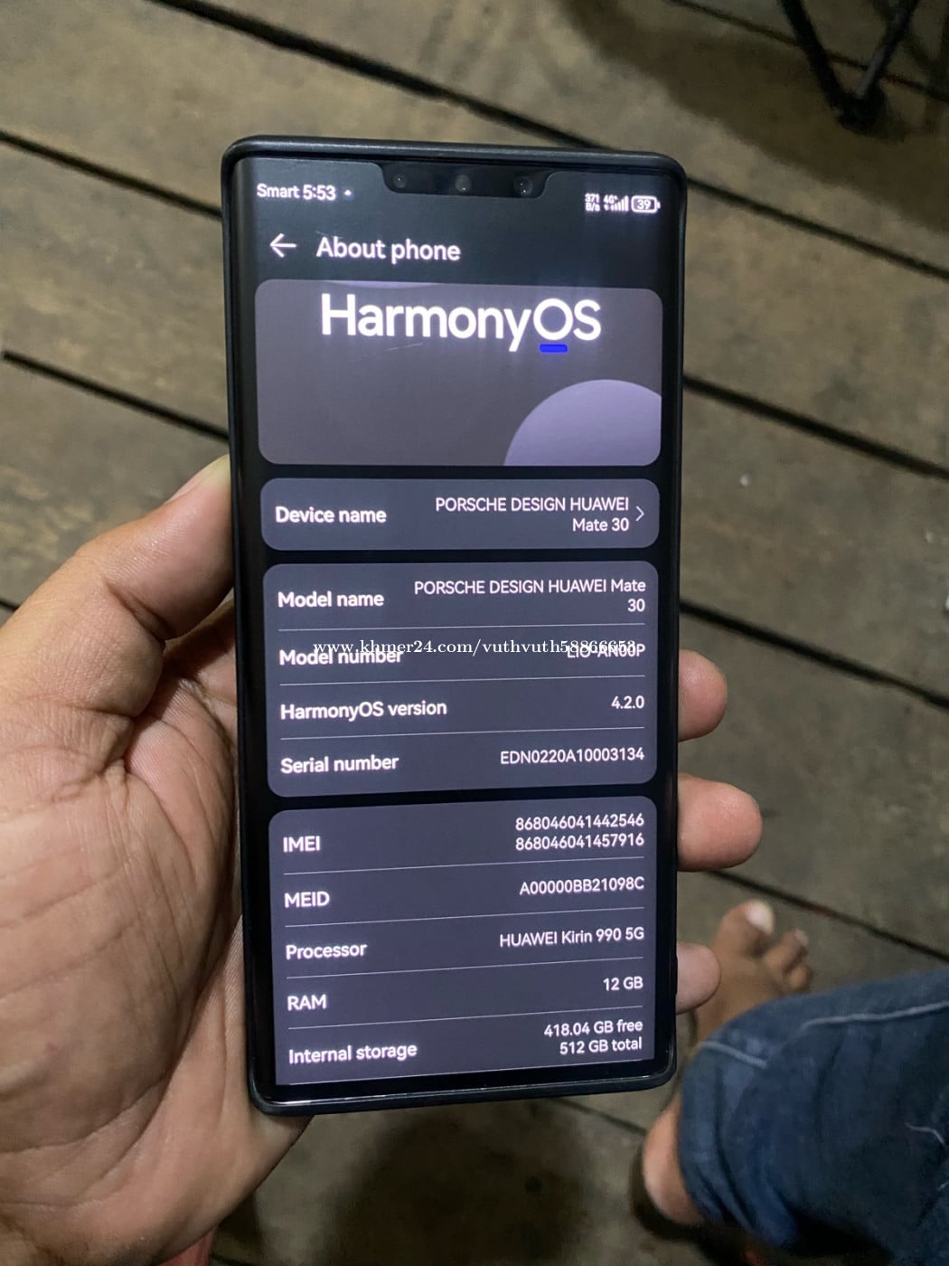 Huawei Mate 30 RS Bypass Sim 2 នៅស្អាត95% ថ្មនៅកាន់ អេក្រង់សសៃសក់តិចៗស្អាត អត់មានឆ្នាំងសាកទេ