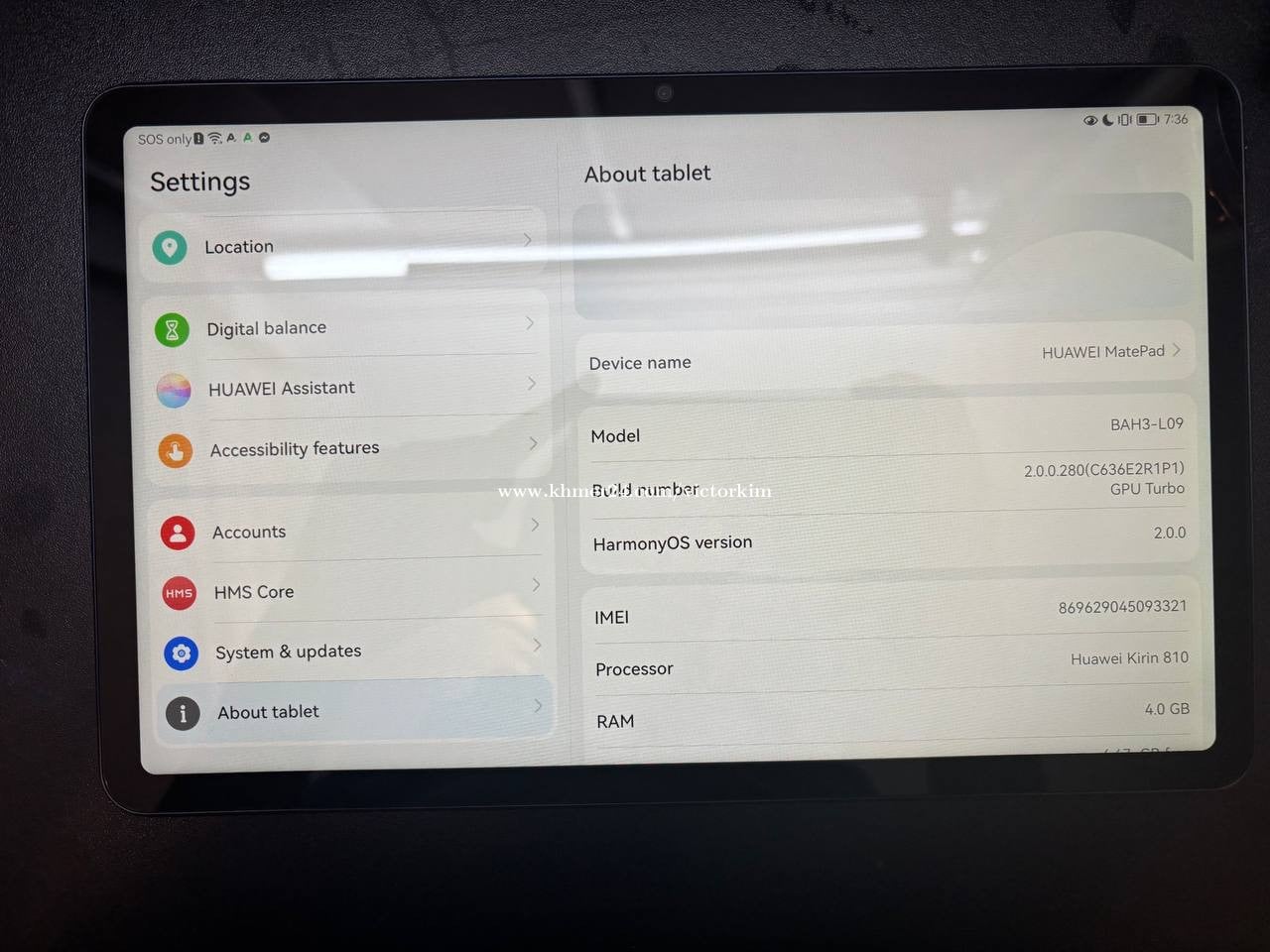 MatePad BAH3-L09 Storage 64gb Ram 4gb Condition used Body condition good 98%