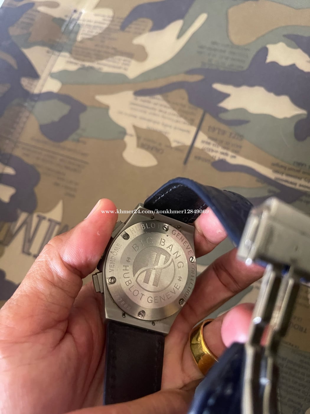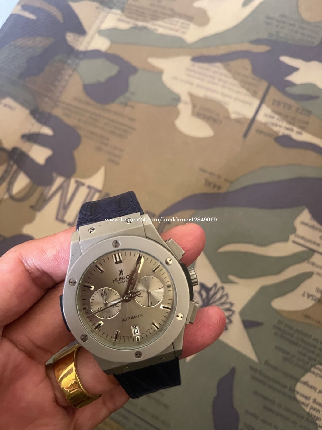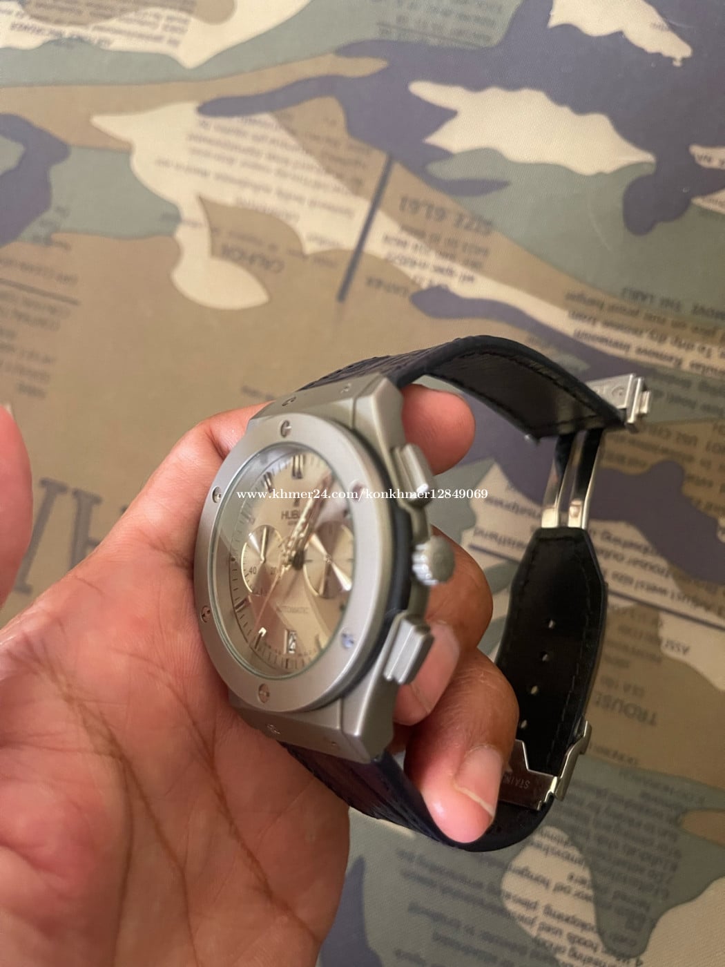 នាឡិកាដៃបុរស ប្រែនម៉ាក Hublot មុខកាត់44mm Zin Japan នៅស្អាតខ្សែស្បែក