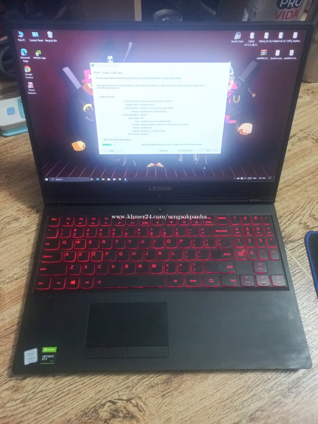I have Lenovo legion y7000 2019 like new 97% have adapter and bag Laptop Run window 10 Cpu Intel Core i5 9th Gen Graphics Card Nvidia GTX 1650 storage 256G Ram 16GB If you need pls contact or message to my telegram @Panha_AhRaJa